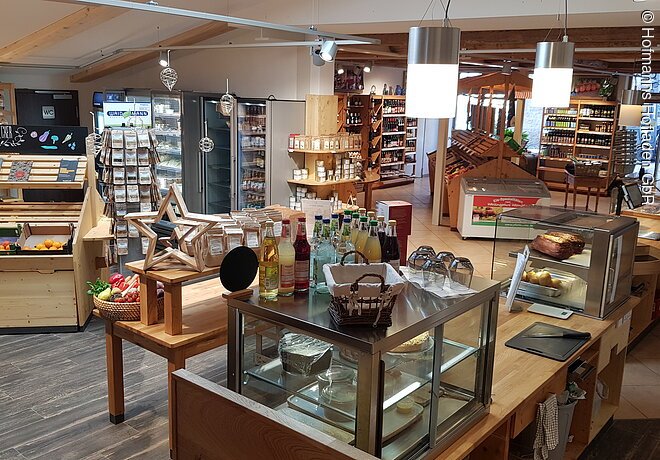 Hofmanns Hofladen mit Blick in den Stall