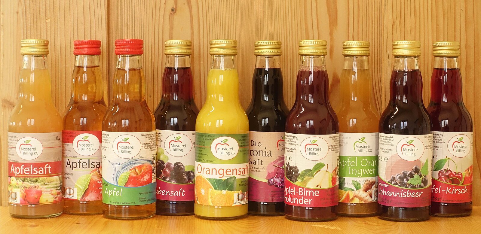 - Saft vom eigenen Obst in Flaschen und Bag-in-Box-System