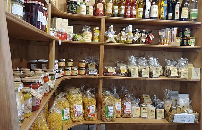 Von Bauernhofeis, Nudeln, Eiern, Milch und Milchprodukten über Wurstwaren, Fisch, sowie süßen und deftigen Köstlichkeiten bis hin zu Wein, Bränden und Likören.