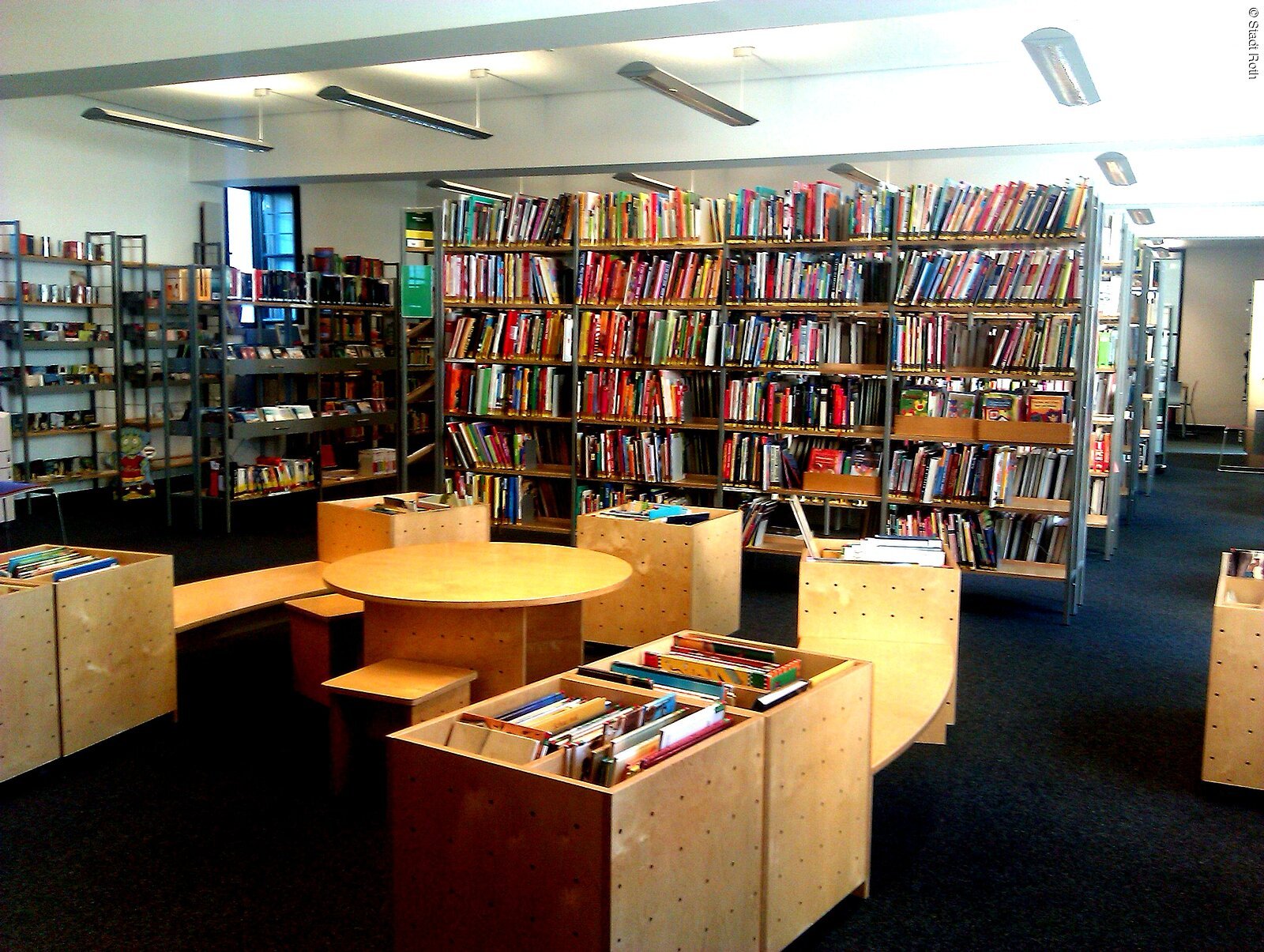 Zur Auswahl stehen Webkatalog, 32.000 Medien, Zeitschriften, CD-Roms, DVDs, Hörbücher, öffentlich nutzbare Internetplätze, Verbraucher-Infothek, digitale Medien über Onleihe, Bestellungen aus dem Fernleihverkehr.