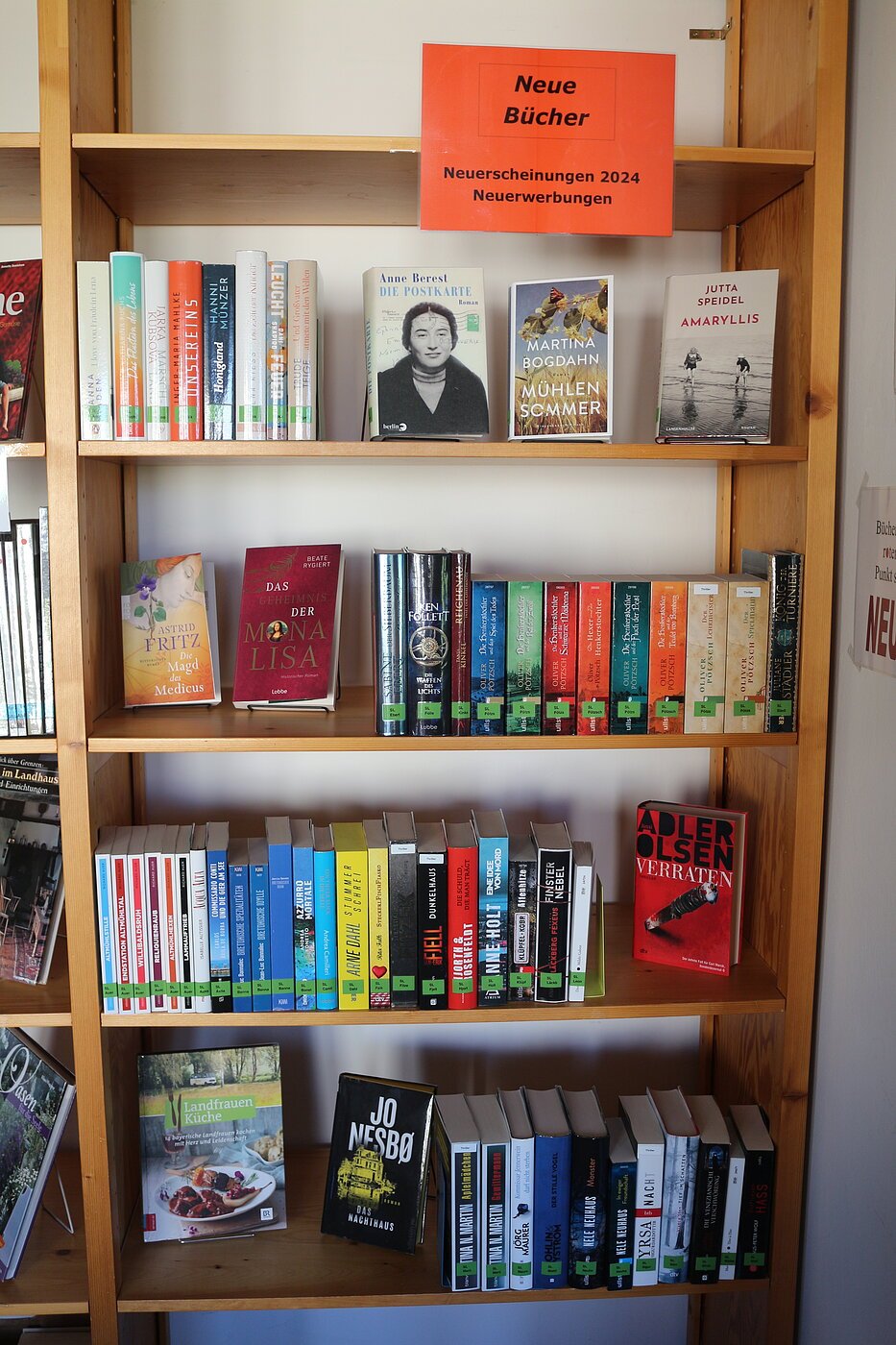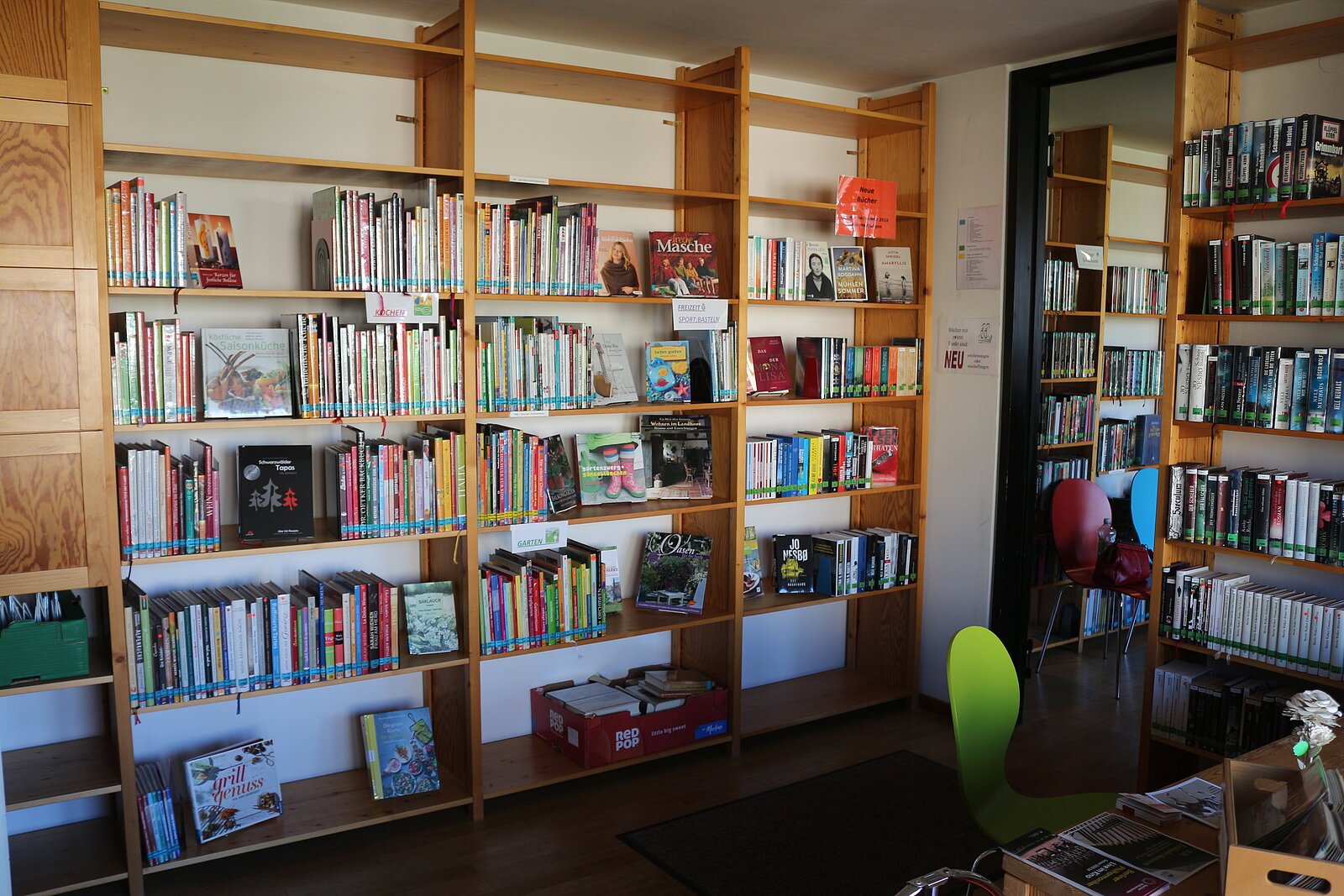Das Angebot umfasst Bilderbücher, Bücher für Erstleser/innen, Kinder- und Jugendbücher, Sachbücher aus den Bereichen Geschichte, Heimatkunde und Religion dazu Koch- und Bastelbücher, Gartenbücher und vieles mehr. Biographien und gut sortierte aktuelle Belletristik vervollständigen das Angebot, das ständig auf dem aktuellen Stand gehalten wird. Im Audiobereich bieten wir Tonies für Kinder von 3 – 10 Jahren an. Außerdem finden Sie bei uns Hörbücher für Erwachsene.