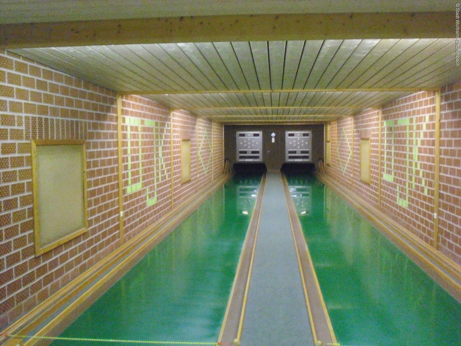 Die Kegelbahnen befinden sich im Kellergeschoss der Sportgaststätte.