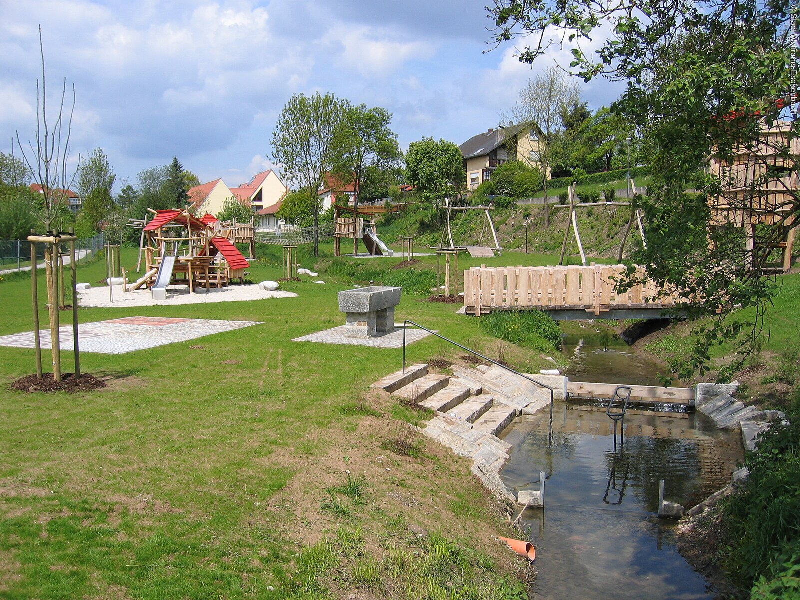 Am Rande des Spielplatzes liegt eine Kneippanlage mit Barfußpfad für die etwas größeren Besucher.