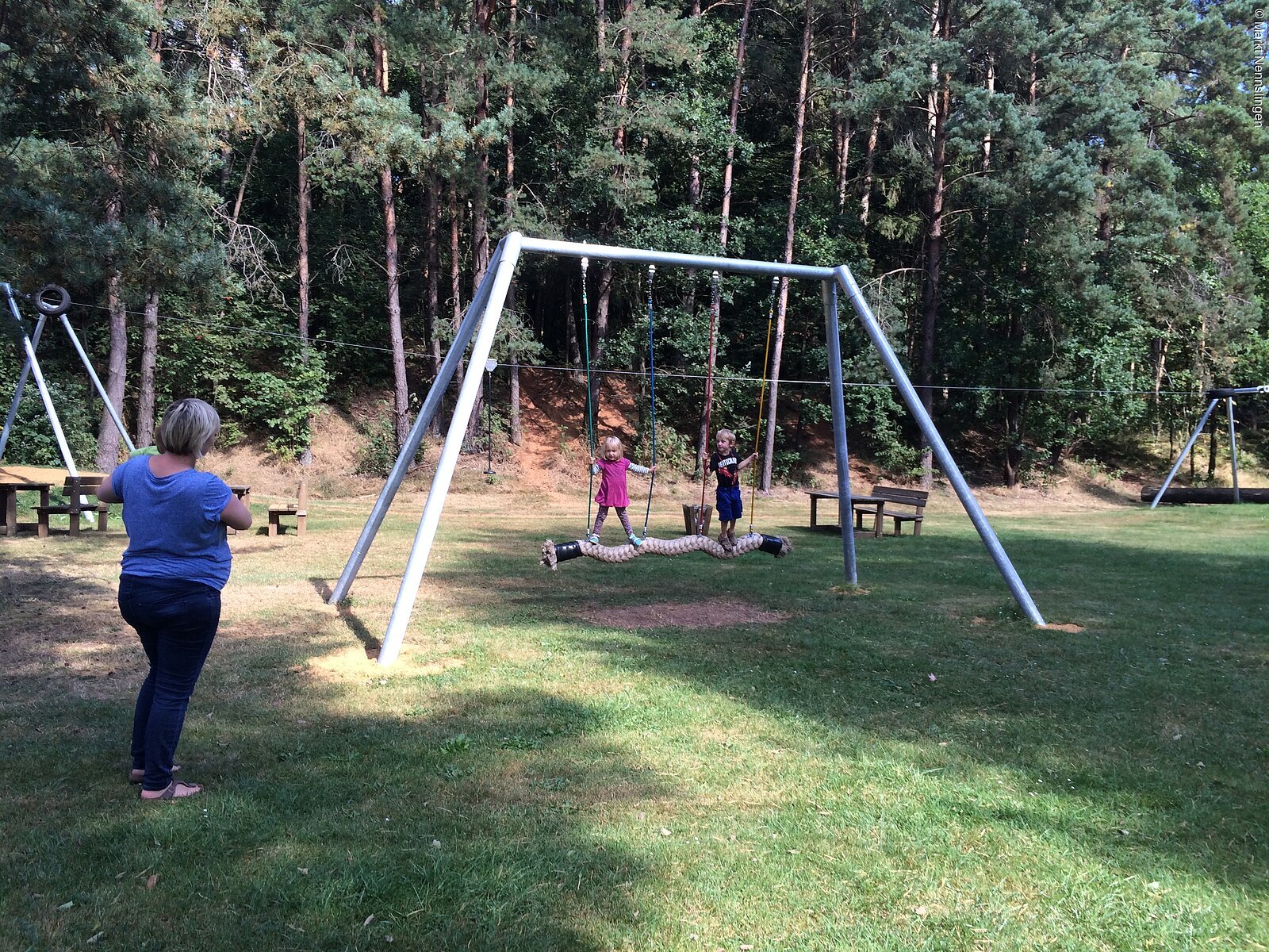 Der Spielplatz in Nennslingen am Krohenlohweg ist mit einer Rutsche, einem Unterstand, einem Klettergerüst, einer Wippe, einer Schaukel, einer Seilbahn, einem Vogelnest, einem Karussell, einem Sandkasten, einem Balancierbalken und einem Schwenkreifen ausgestattet. Die Grünflächen laden zum Verweilen ein.
