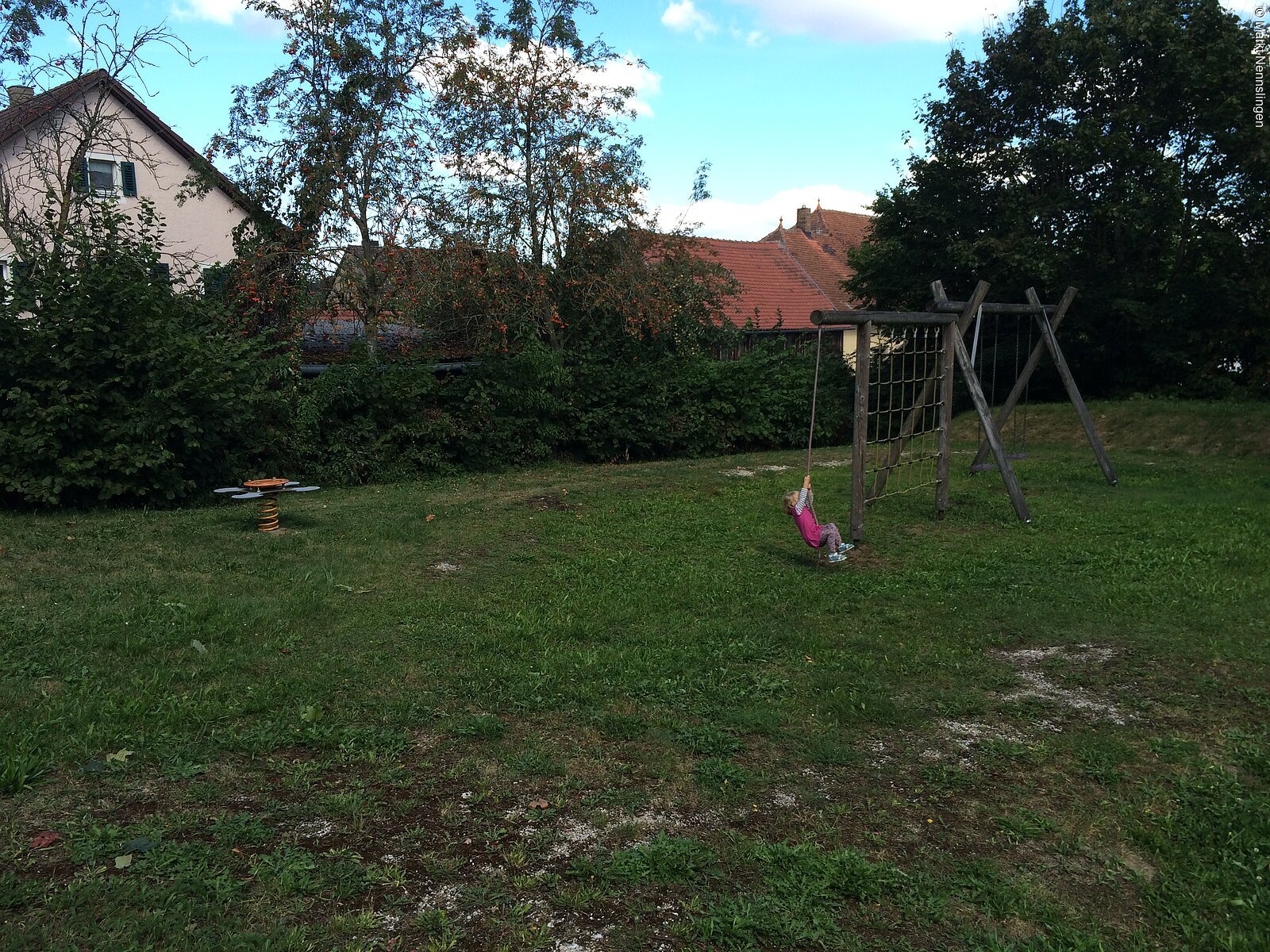 Der Spielplatz in Nennslingen an der Weißenburger Straße ist mit einem Klettergerüst, einer Wippe, einer Schaukel, einem Tunnel zum durchkriechen und einem Schwingpferd ausgestattet. Die Erwachsenen können es sich auf der grünen Fläche, bei einem Picknick gemütlich machen, während die Kinder sich austoben.