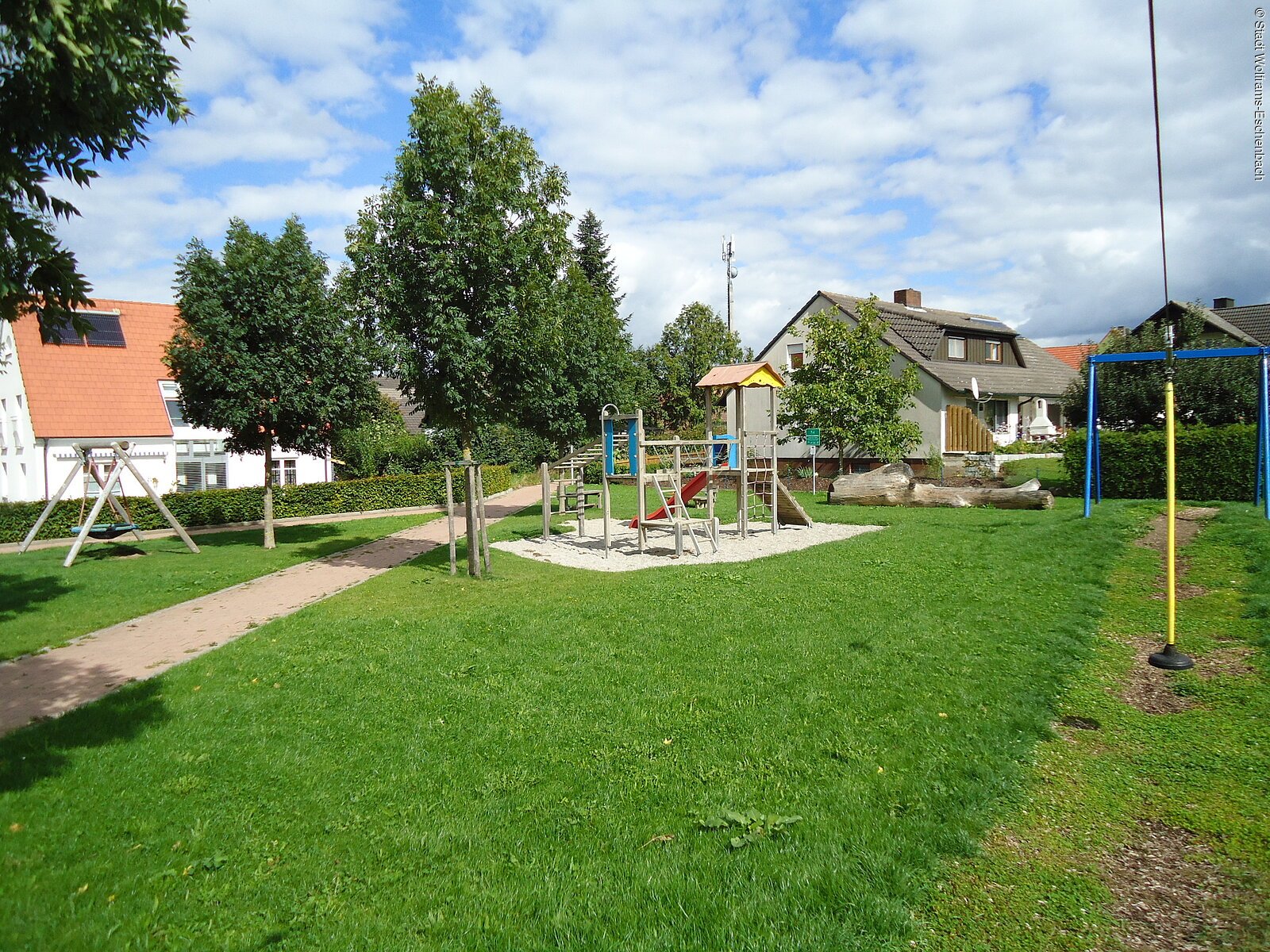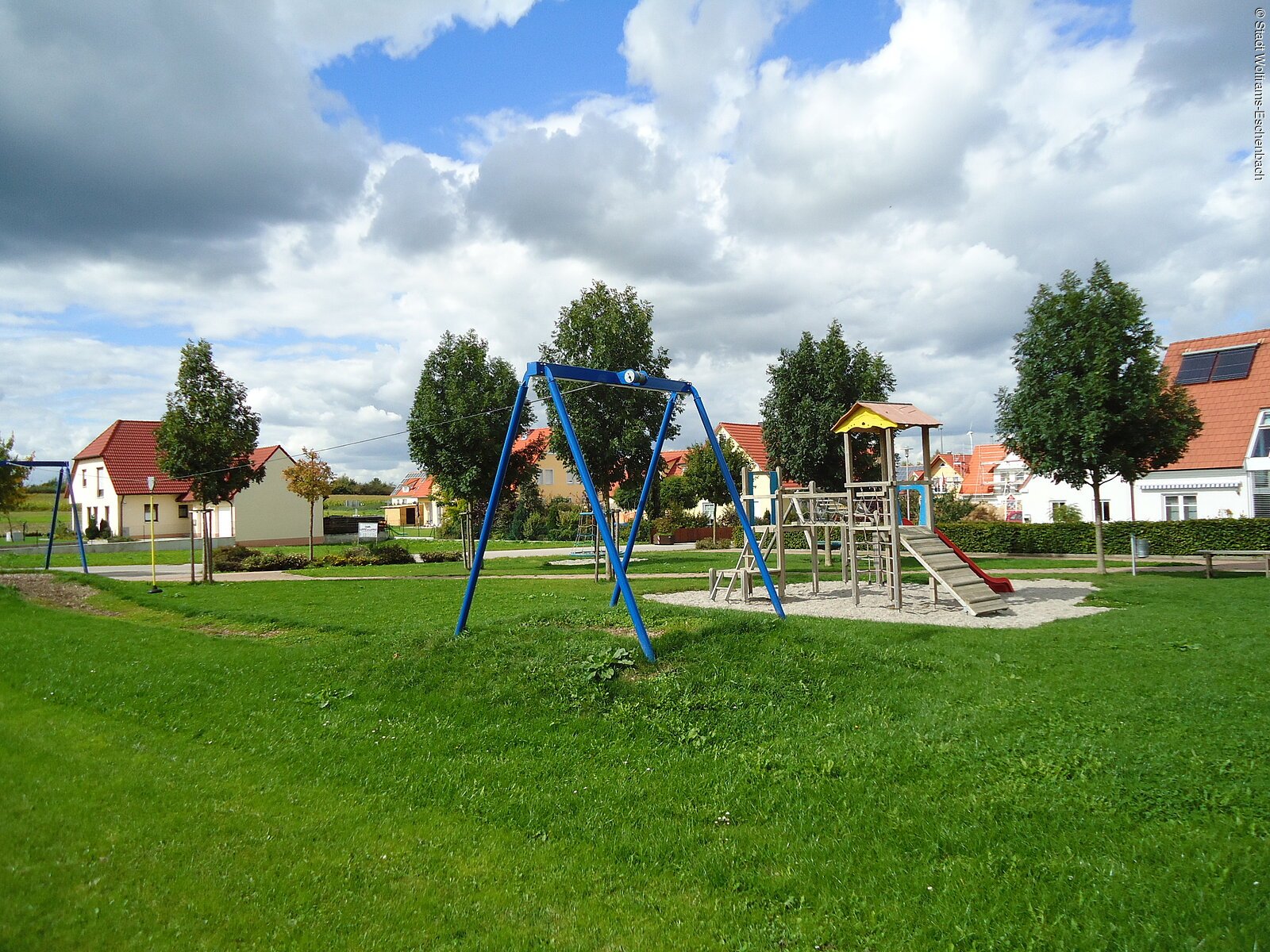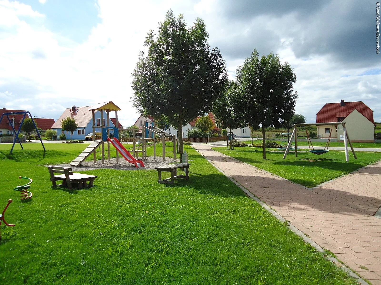 Der Spielplatz liegt in Richtung Westen und gehört zu einem der beliebtesten Spielplätzen in Wolframs-Eschenbach. Die Kinder sind von der Nestschaukel, Spielanlage mit Rutsche, Seilbahn, Kletter(seil)-Baum und zwei Federwippen sehr begeistert. Die Eltern können mit ihren Kindern spielen, toben oder auch abschalten und sich erholen.