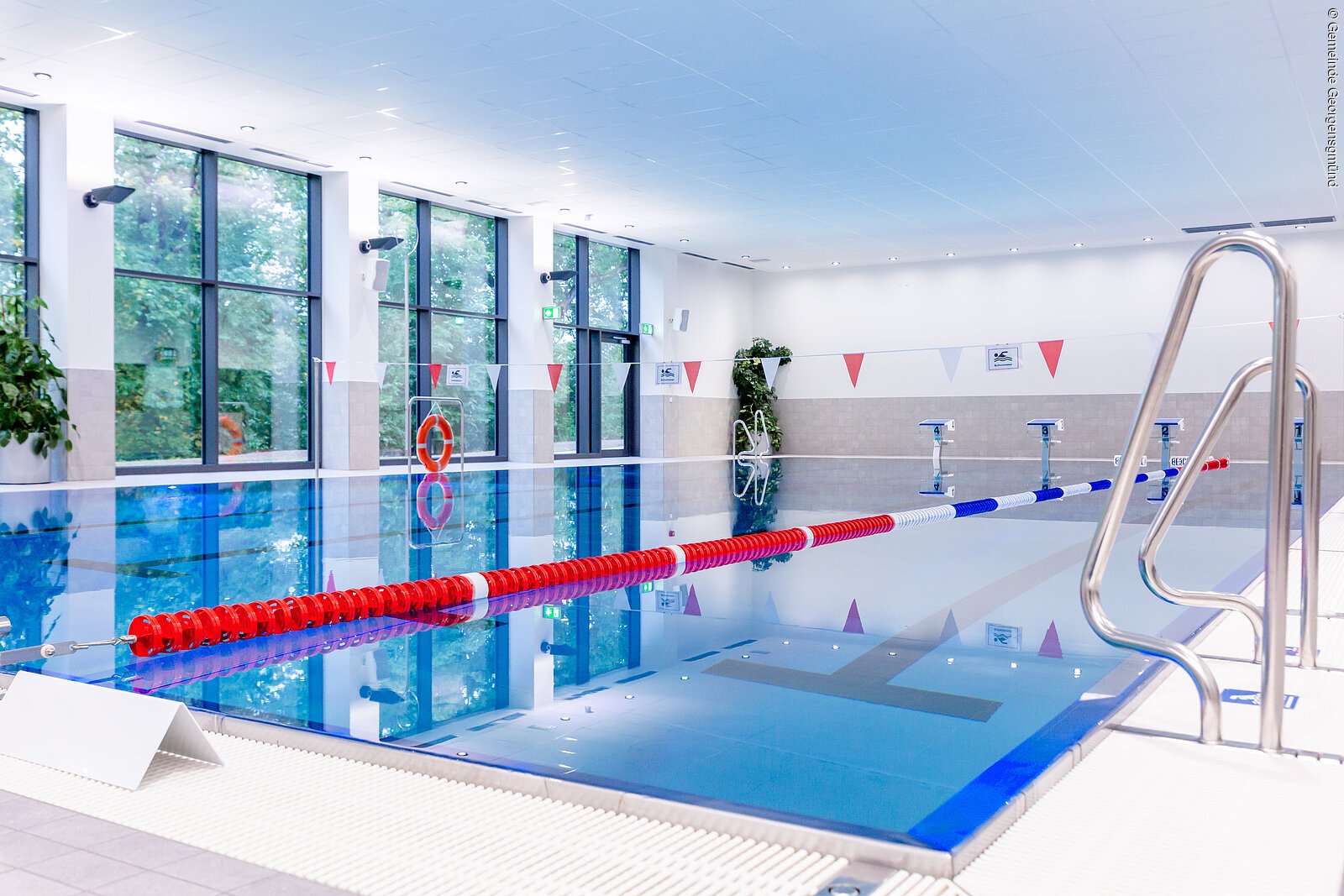 Ein 20-Meter Schwimmerbecken mit Hubboden und Nichtschwimmerbereich.
