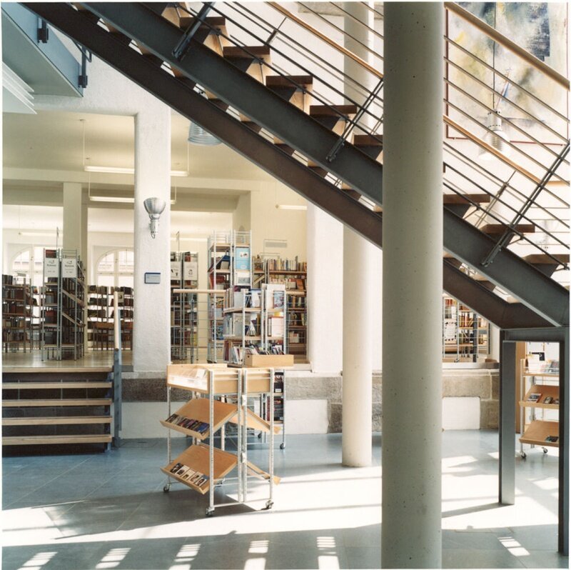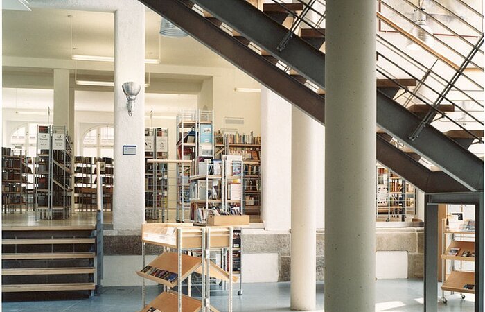 In einem traditionsreichen, aber umgebauten und renovierten Gebäude finden Sie uns als eine freundliche und ansprechende Bibliothek.