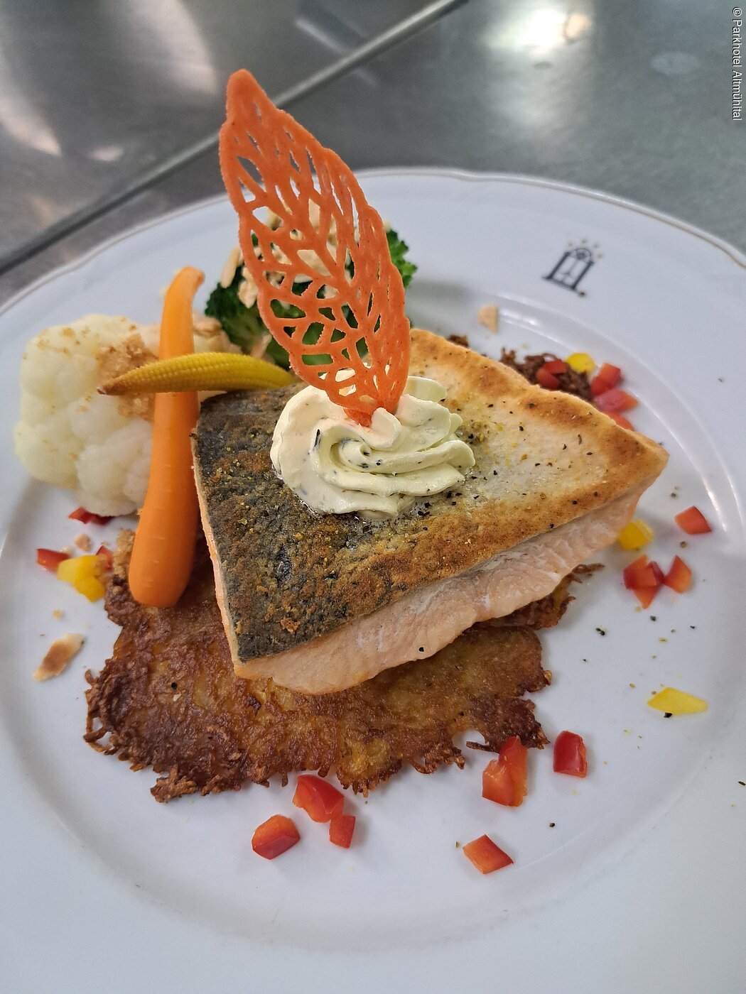 - Regionale Produkte: Altmühltaler Lamm, Bachsaibling, Wild aus der Region, Obst und Gemüse, Fleisch- und Wurstspezialitäten