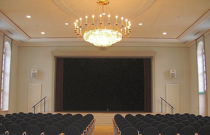 Deswegen wurde ab 1858 ein Neubau konzipiert. Dieser sollte etwas weiter westlich vom ursprünglichen Badestandort errichtet werden. Wegen der inzwischen aber nicht mehr nachweisbaren Heilwirkung des Wassers wurde eine neue Konzeption gewählt. Anstelle eines Heilbades wurde ein "Volksbad" mit einem großen städtischen Veranstaltungsraum geplant und dann auch ab 1868 errichtet. Die Pläne dazu stammten vom städtischen Baurat Söldner. Die feierliche Eröffnung des im klassizistischen Stil gehaltenen Gebäudes erfolgte am 6. Mai 1869. Der Betrieb der Badeanstalt und der begleitenden Gastronomie wurde verpachtet. Der Saal selbst wurde als Veranstaltungsraum von Vereinen, aber auch von der Stadt, für alle möglichen Festivitäten rege genutzt. Ab dem Ersten Weltkrieg fanden im Festsaal auch Kinovorführungen statt.