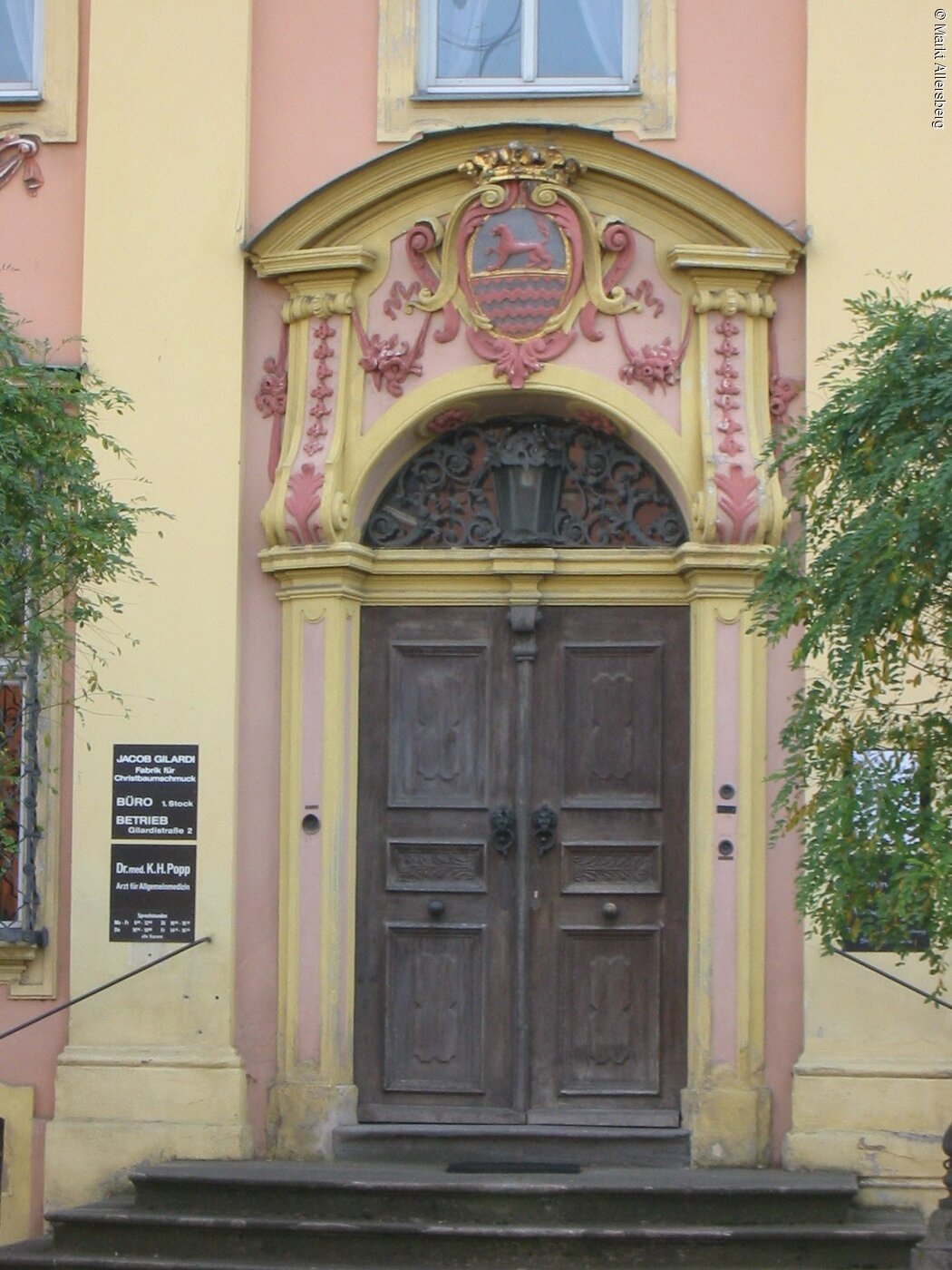 Wohnhaus der Allersberger Drahtbarone, die Anfang des Jahres 1757 geadelt wurden. Ein schlossähnliches Haus, benannt nach Jacob Gilardi, einem Mailänder, der 1708 in die leonische Drahtfabrik einheiratete und die Drahtzieherei in Allersberg zu hoher Blüte brachte. Erbaut 1723-1728 von Gabriel de Gabrieli. Seit 2006 im Besitz des Marktes Allersberg.