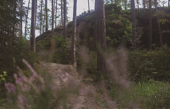Die Wernsbacher Steinbrüche sind über den Steinbruchweg (Wanderweg Nurmmer 2; Petersgmünd-Wernsbach-Mauk) zu erreichen. Hier tut sich eine grandiose Kulisse auf - mit steilen Wänden, buschbestandenen Sandflächen und Steinbögen.