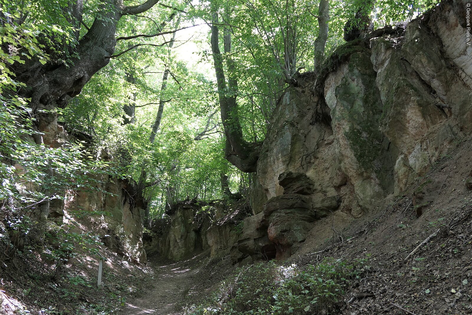 Der schluchtartige Hohlweg bietet einen sehr guten Aufschluss von Doggersandstein mit seinen Erzhorizonten. Hangparallele Störungen versetzen die Schichtfolge mehrfach. Der Hohlweg ist Teil eines heimat- und naturkundlichen Lehrpfades.