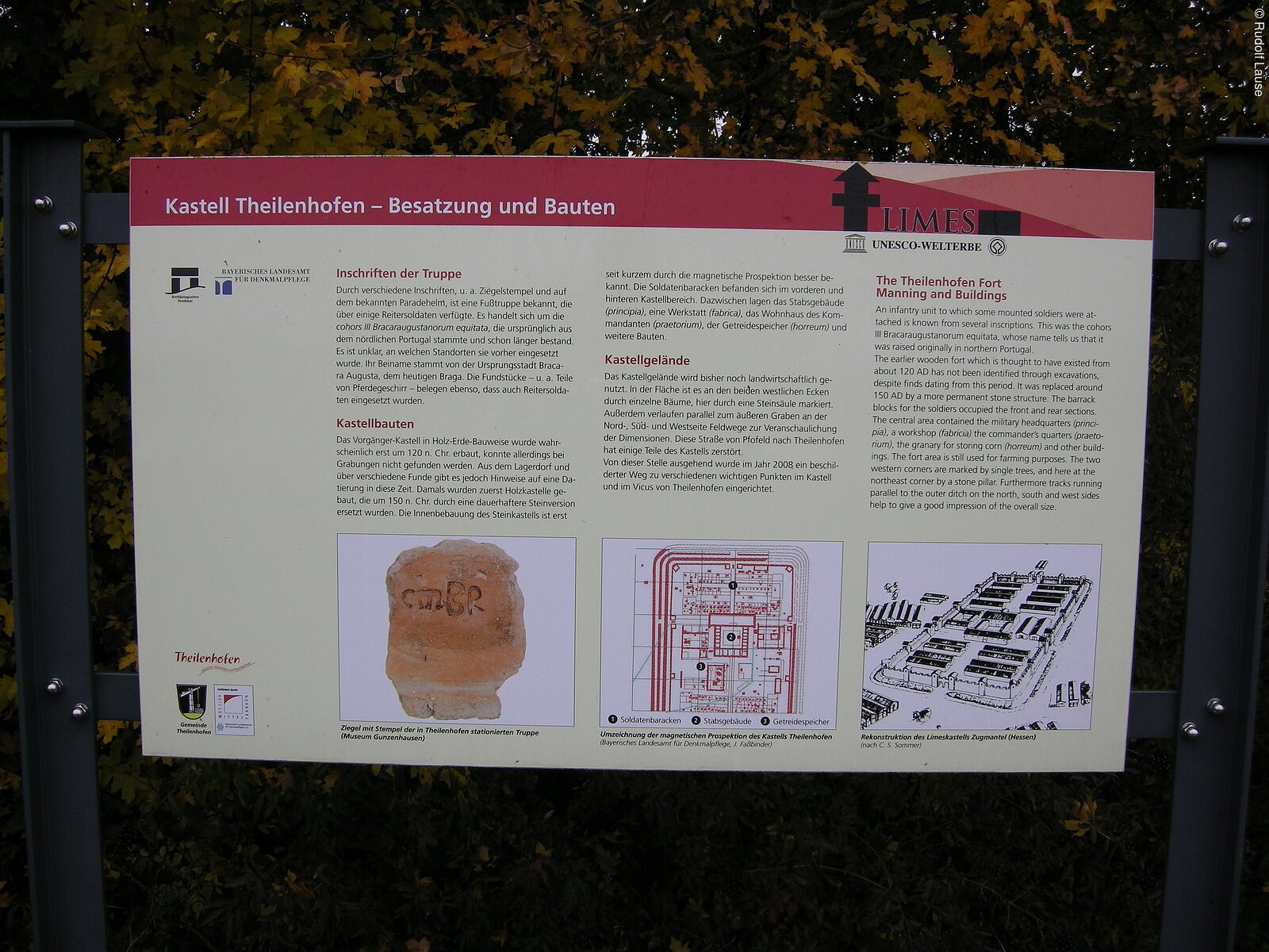 Die nördlich an den Ort Theilenhofen anschließende Feldflur war einst der Standort des Kastells Theilenhofen (ORL 71a) mit zugehörigem Vicus, einem Kastellbad und einem früheren Holz-Erde-Kastell. Der Umriss des 196 x 140 m großen Steinkastells ist nur aus den Untersuchungen der Reichslimeskommission bzw. aus Luftbildern bekannt.