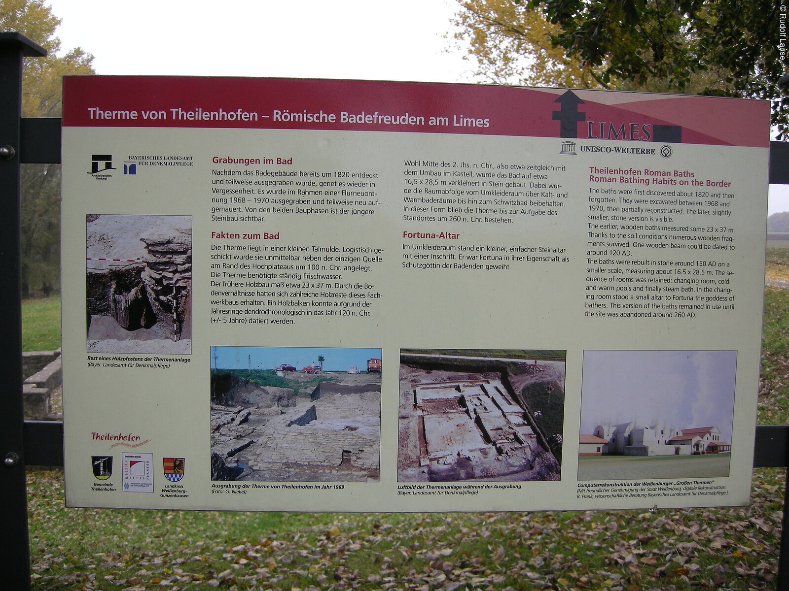 Westlich des Kastellareals wurde in der dortigen Talsenke (in der Nähe eines Weihers) im Zuge von Flurbereinigungsmaßnahmen das Bad des Kastells Theilenhofen entdeckt. Es ist 1968 - 1970 vom Bayerischen Landesamt für Denkmalpflege archäologisch untersucht und anschließend in seiner jüngsten Phase konserviert worden.