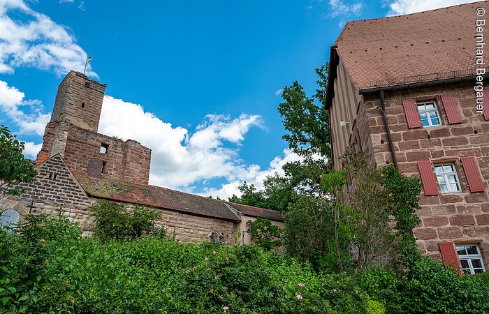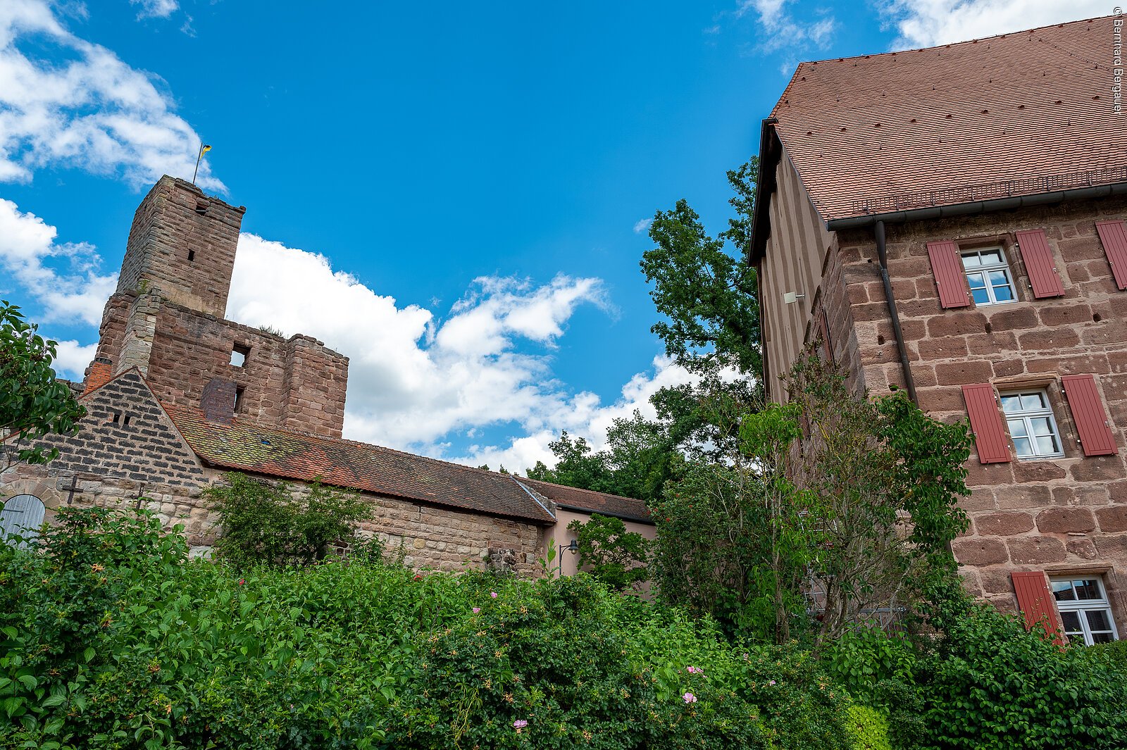 Der kleine Rosengarten am Haus des Gastes wurde 1993 angelegt. Zu sehen sind Beet- und Strauchrosen sowie Rosenhochstämmchen in zahlreichen Sorten. Der Garten befindet sich im historischen Umfeld neben der ehemaligen Zehntscheune (Kornspeicher) am Fuß der Burgruine. In dieser ist heute die Tourist-Information des Landkreises Roth untergebracht. Hauptrosenzeit ist Ende Juni/Anfang Juli.
