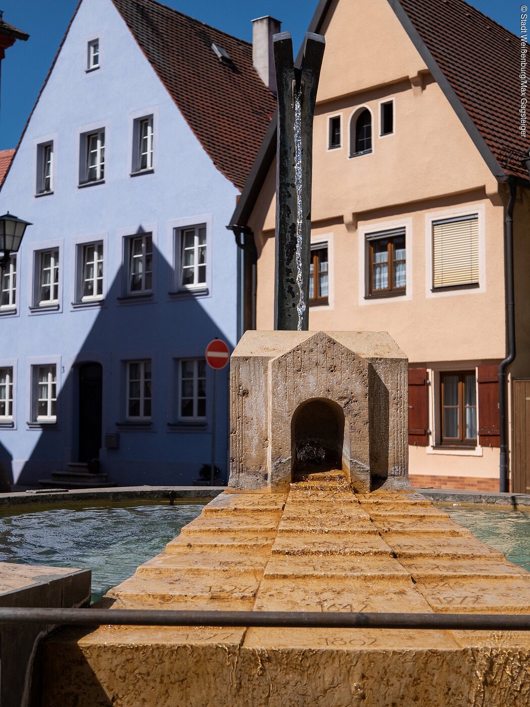 Der Millenniumsbrunnen wurde zum Schuljahresbeginn 2000/2001 in Betrieb genommen und hat eine Grundfläche von drei mal drei Metern. Er ist aus Kalkstein und Bronze geschaffen und wurde von der Stadt als Schlusspunkt zur Neugestaltung des Platzes "Auf der Kapelle" in Auftrag gegeben. Schöpfer ist der Eichstätter Bildhauer Günter Lang, von dem auch das Denkmal "Flüchtlingslager Wülzburg" stammt.