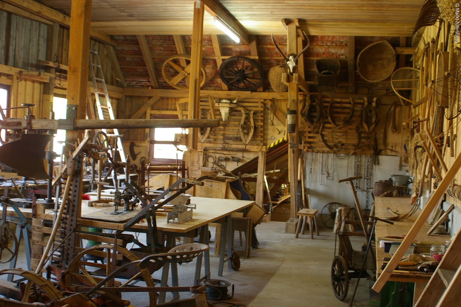 Angefangen von einer Holmschneidemaschine aus dem Jahre 1870 bis hin zur Kleegeige, mit der man früher die Saat auf den Äckern ausgebracht hat, ist eine Menge von landwirtschaftlichen Gerätschaften zu sehen.
