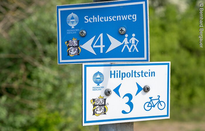Die Schleuse ist mit einer Fallhöhe von 24,67 m eine der größten Schleusen und als Sparschleuse gebaut. In der Nähe von Pierheim befindet sich mit 406,0 m über NN der höchste Punkt vom Main-Donau-Kanal. An dieser Stelle befindet sich ein Bauwerk. Der Schleusenweg lädt ab der Schleuse Hilpoltstein zum Spazieren im Umland ein.