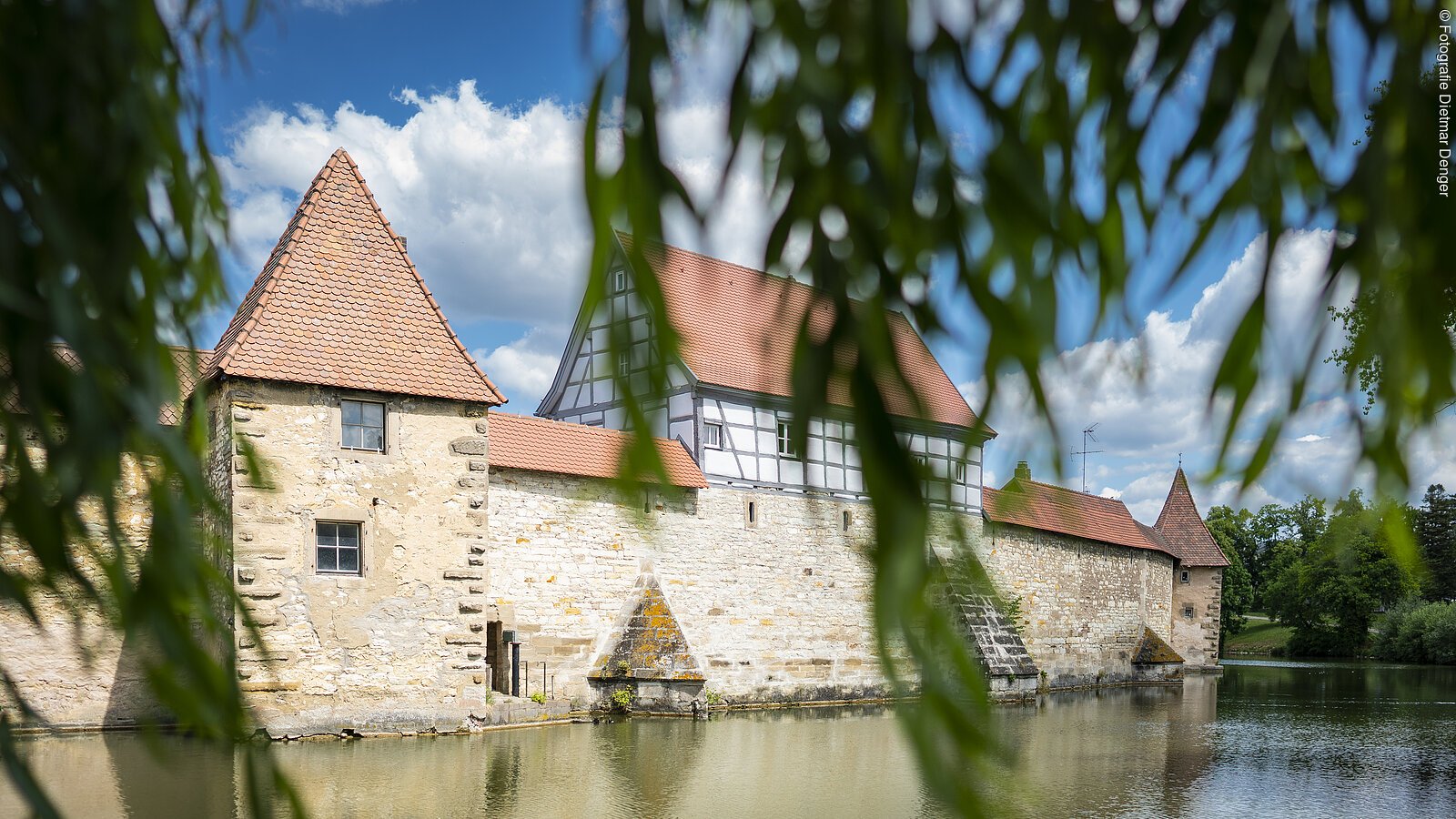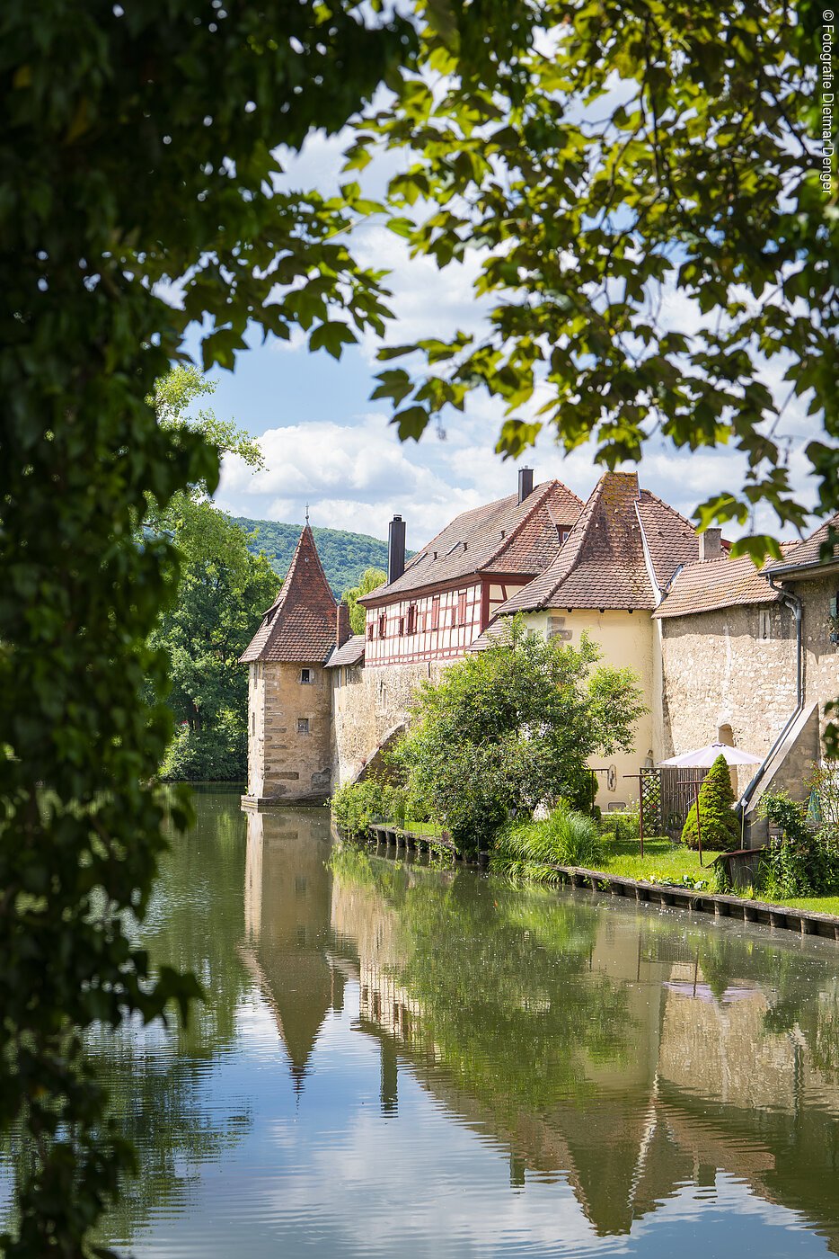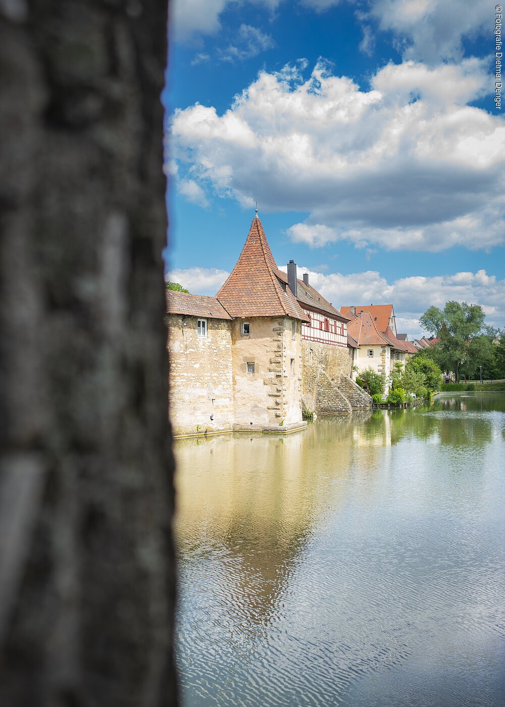 Historische Stadtmauer mit geflutetem Befestigungsgraben
