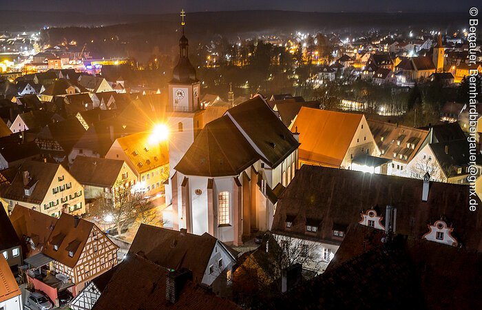 Die Hilpoltsteiner Pfarrkirche St. Johannes wurde 1473 erbaut. 1732 im Stil des Spätbarocks umgestaltet, wurde sie am 31. Mai 1735 von dem Eichstätter Fürstbischof Franz Ludwig Freiherr Schenk neu geweiht. In den Jahren 1887, 1929 und 2011 folgten umfassende Renovierungen und Restaurierungen. Die Kirche ist im Kern spätgotisch geblieben, Chor und Turmunterbau stammen von 1473. Die Deckenfresken zeigen unter anderem Szenen aus dem Leben von Johannes dem Täufer und wurden im 18. Jahrhundert von Melchior Puchner gestaltet. Die Stuckarbeiten im Langhaus fertigte Jeronimo Andrioli etwa zur selben Zeit. Besonders eindrucksvoll ist der Hochaltar von 1702, bestehend aus der rückwärtigen Tafel mit Säulen und geziert von lebensgroßen Figuren. Das imposante Gemälde des Jesuiten Paulus Bock von 1656 steht im Zentrum des Hochaltars und zeigt die Todesszene des Märtyrers Johannes der Täufer. Das Diözesanmuseum Eichstätt bestimmte das Hochaltarblatt in seiner Reihe von Objekten, die von besonderer künstlerischer oder historischer Bedeutung sind, 2017 zum „Kunstwerk des Monats“.