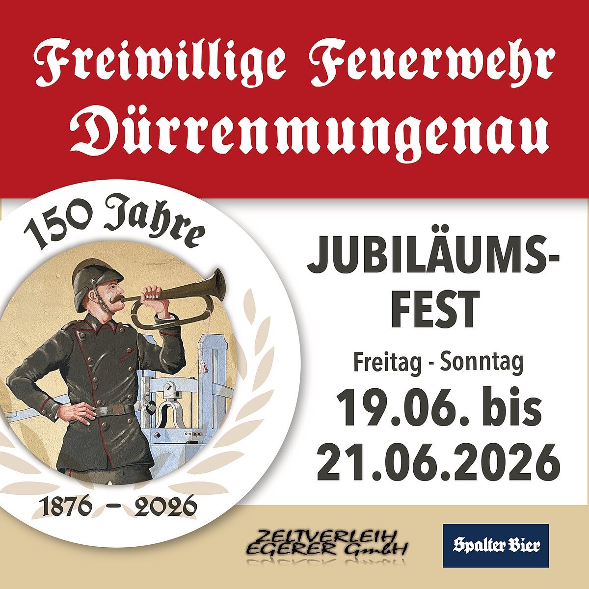 Vom 19. bis 21.Juni findet das 150-jährige Jubiläum der Freiwilligen Feuerwehr Dürrrenmungenau statt.