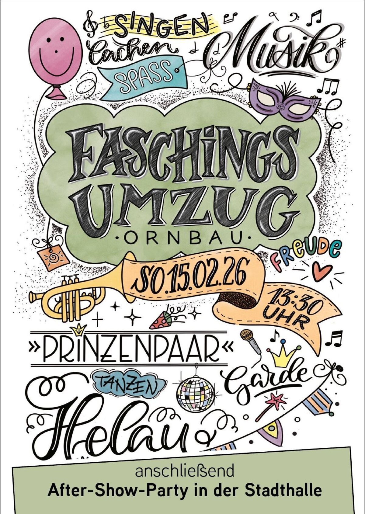 Der Ornbauer Faschingsumzug findet jeweils am letzten Sonntag im Fasching statt und lockt bei schönem Wetter an die 10 000 Besucher nach Ornbau. Beginn ist um 13:30 Uhr. Das von Ornbauer Vereinen und Vereinigungen organisierte närrische Großereignis hat im gesamten westmittelfränkischen Raum einen ausgezeichneten Ruf und wird im Anschluss an den Umzug durch ein buntes Faschingstreiben in der Stadthalle abgerundet.