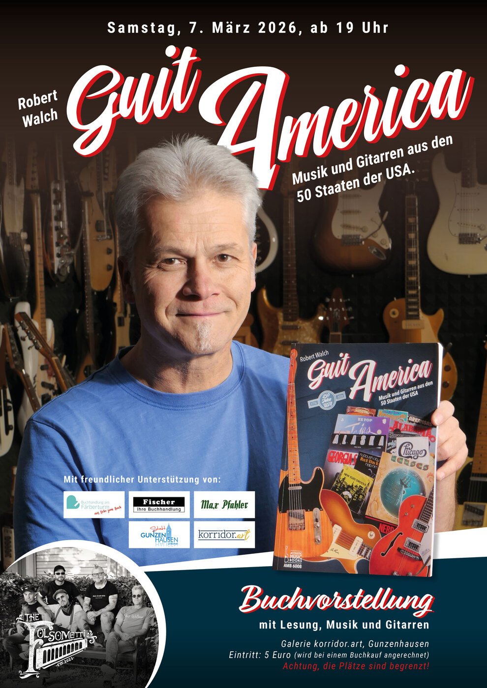 Der Gunzenhäuser Gitarrenbauer und USA-Enthusiast Robert Walch stellt am 7. März ab 19 Uhr in der Galerie korridor.art sein neues Buch „GuitAmerica“ vor. Mit imGepäck hat er einige alte und seltene Gitarren aus den USA sowie die Band „TheFolsometti“.