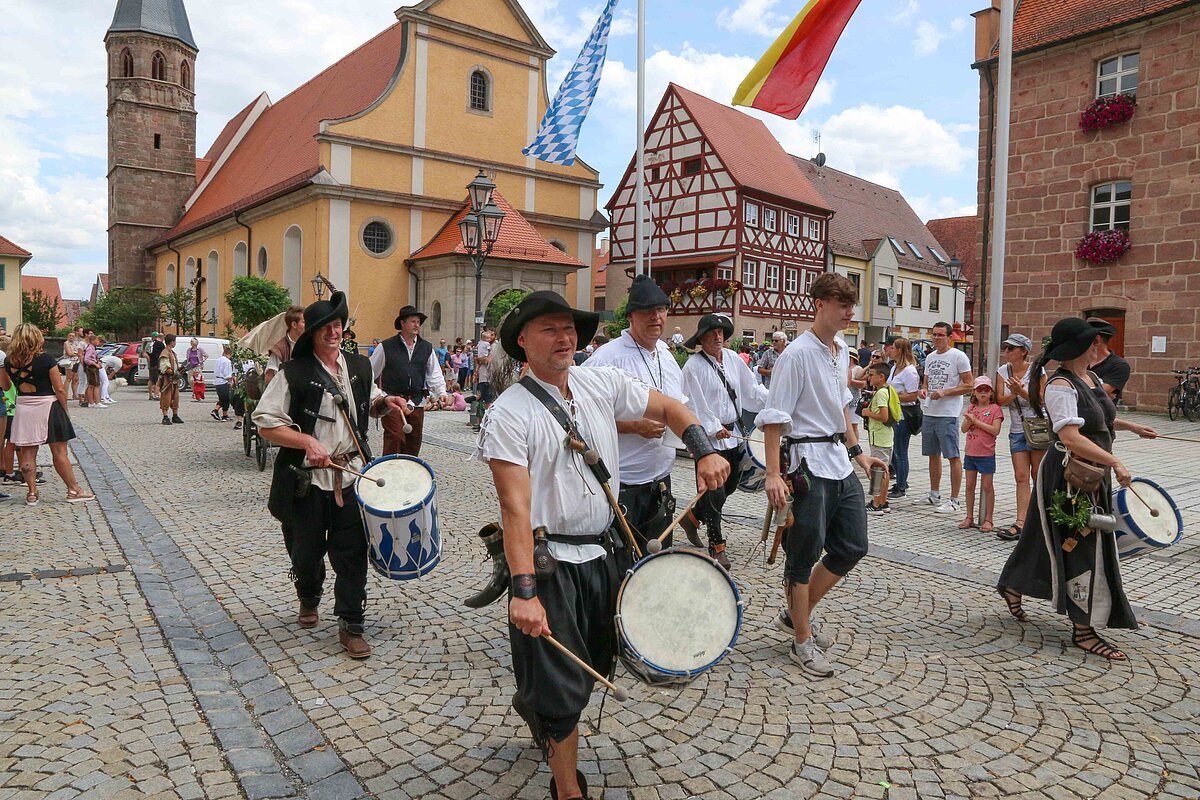 Feilschen und ein spritziger Wettbewerb stehen am Samstag auf dem Programm. Der Trödelmarkt lockt viele Kinder und Jugendliche, aber auch Erwachsene zum Marktplatz. Nicht ganz so gemütlich geht es beim Fischerstechen zu, wenn die „Gladiatoren des Wäschweihers“ versuchen, ihre Gegner mit einer langen Lanze ins Wasser zu befördern.