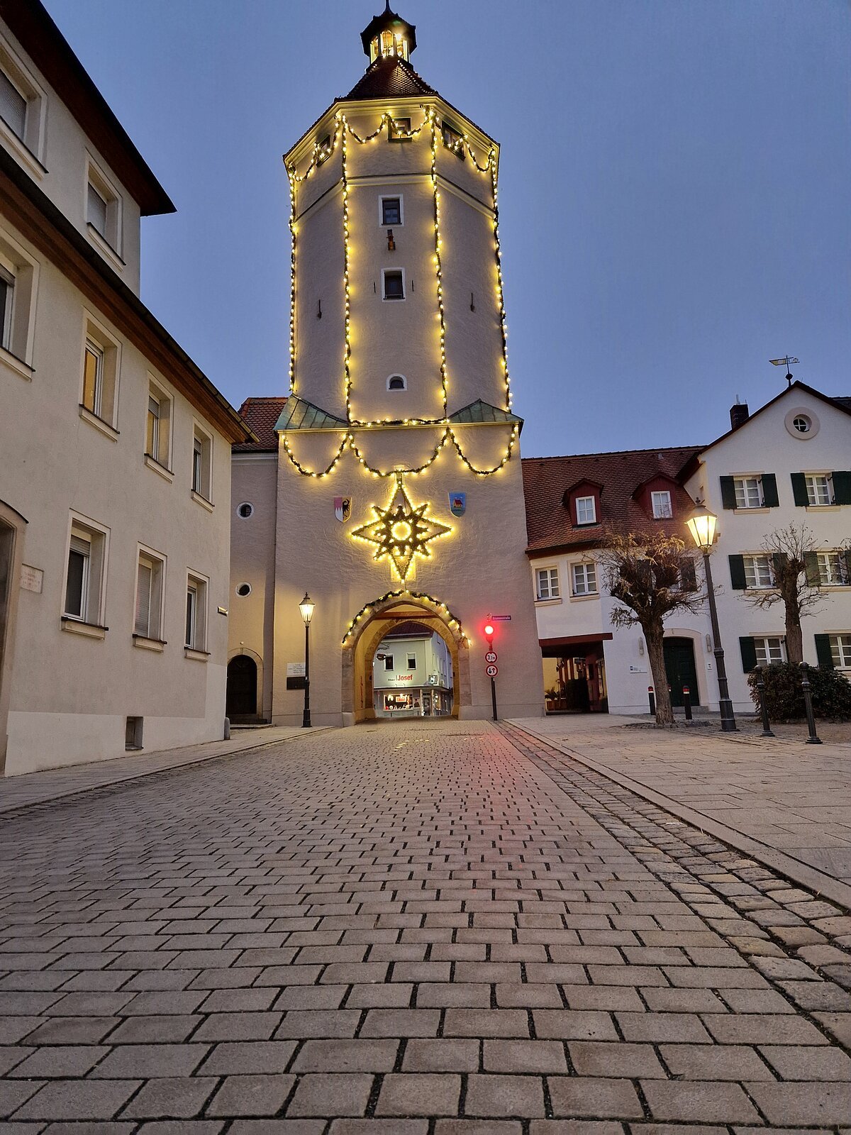 Vom Blasturm genießen Sie einen herrlichen Rundblick über den Romantischen Weihnachtsmarkt, das weihnachtliche Gunzenhausen und den Altmühlsee.