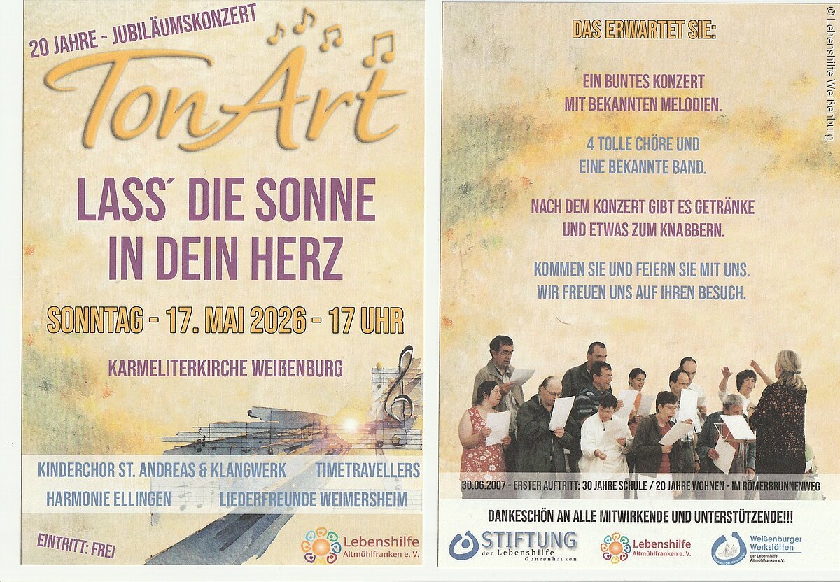 Der Chor TonArt der Lebenshilfe Altmühlfranken e.V. feiert sein 20-jähriges Jubiläum.