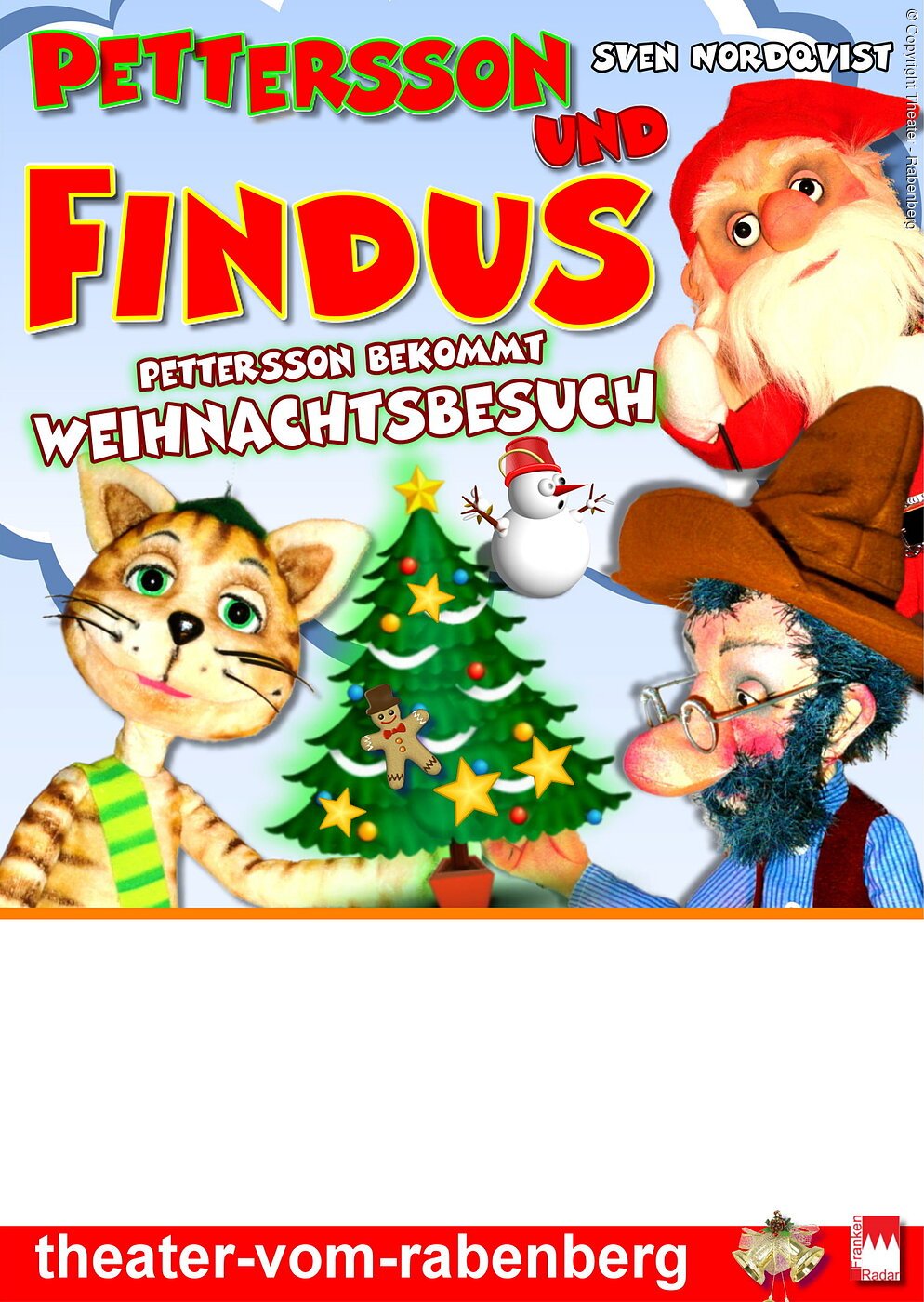 Weihnachten steht vor der Tür. Und der der kleine Kater Findus wünscht sich nichts sehnlicher als dass der Weihnachtsmann ihn besuchen kommt. Aber der Weihnachtsmann besucht ja eigentlich nur Menschenkinder - und keine Katzen. Als sich der alte Pettersson dann, am Tag vor dem heiligen Abend auch noch den Fuß verstaucht, ist eines klar - das wird das schlimmste Weihnachten das Findus jemals erlebt hat! Wie am Ende doch noch alles gut wird, zeigt das „Theater-Rabenberg“ in einem lustigen Stab-Marionetten-Spiel, nicht nur für Kinder!
