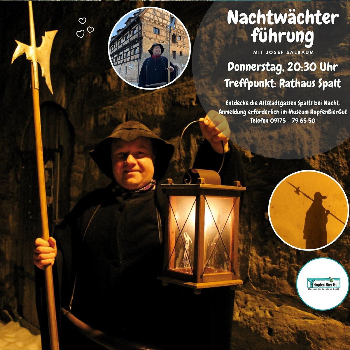 Erleben Sie mit einem richtigen Spalter Unikat Josef Salbaum als Spalter Nachtwächter einen unvergleichlichen Rundgang durch die nächtlichen Gassen der Spalter Altstadt. Hören Sie längst vergessene Sagen und Mythen über die Spalt und Ihre ehemaligen Einwohner.