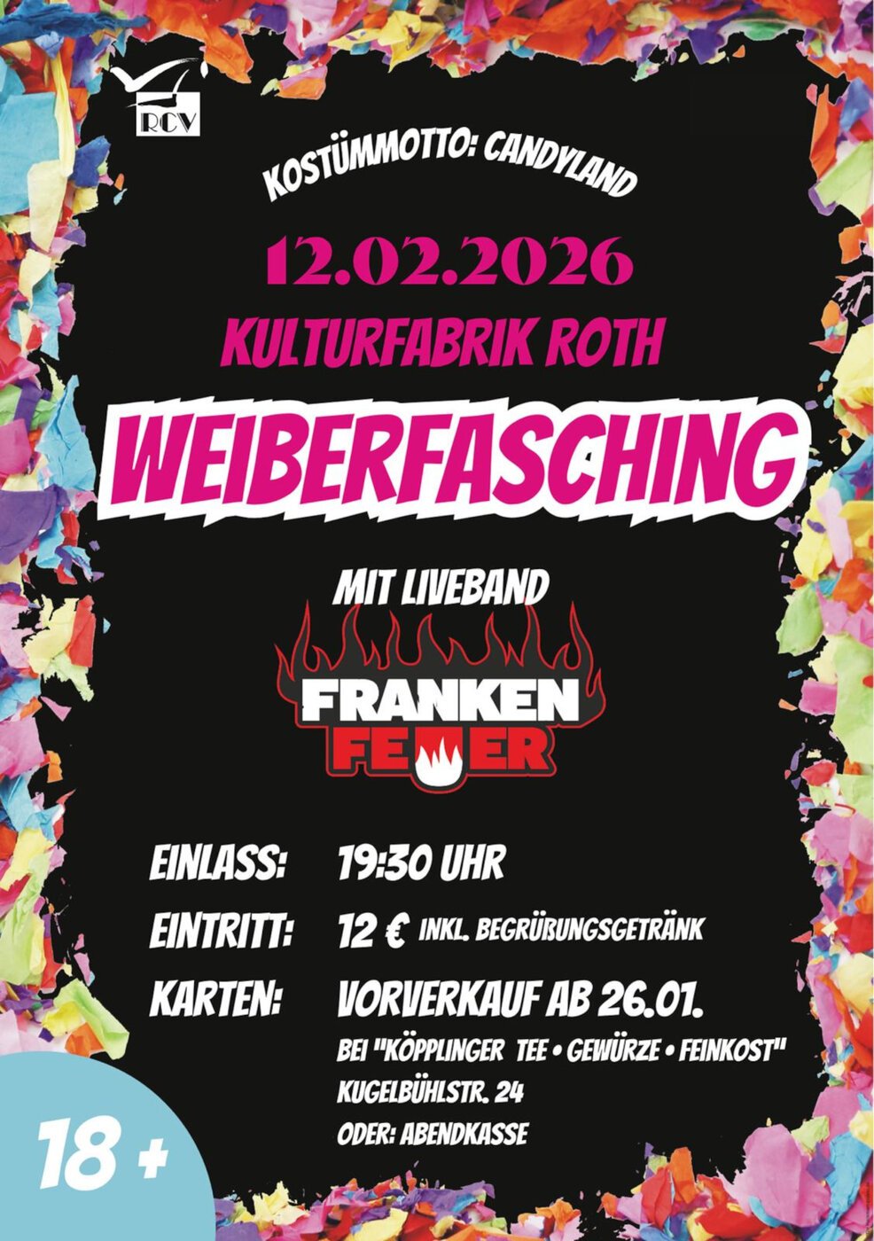 DIE Party am Weiberfasching in der Kulturfabrik Roth und ein MUSS für alle Faschingsfans.