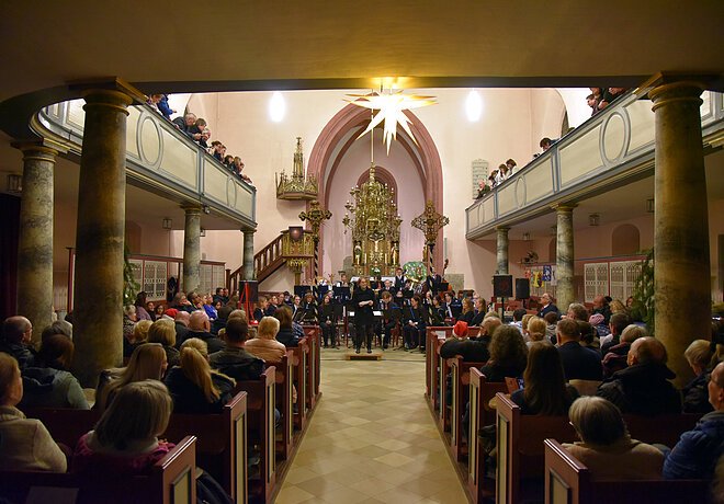 Weihnachtsstimmung garantiert: Auf dem Programm stehen weihnachtliche Klassiker und herrliche sinfonische Werke, deren Klänge den atmosphärischen Kirchenraum erfüllen und in einen festlichen Konzertsaal verwandeln. Himmlischen Besuch gibt es vom Rother Christkind. Der Eintritt zu beiden Weihnachtskonzerten ist frei