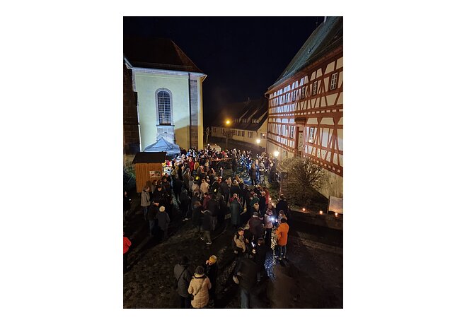 gemeinsames Weihnachtsliedersingen im Schlosshof