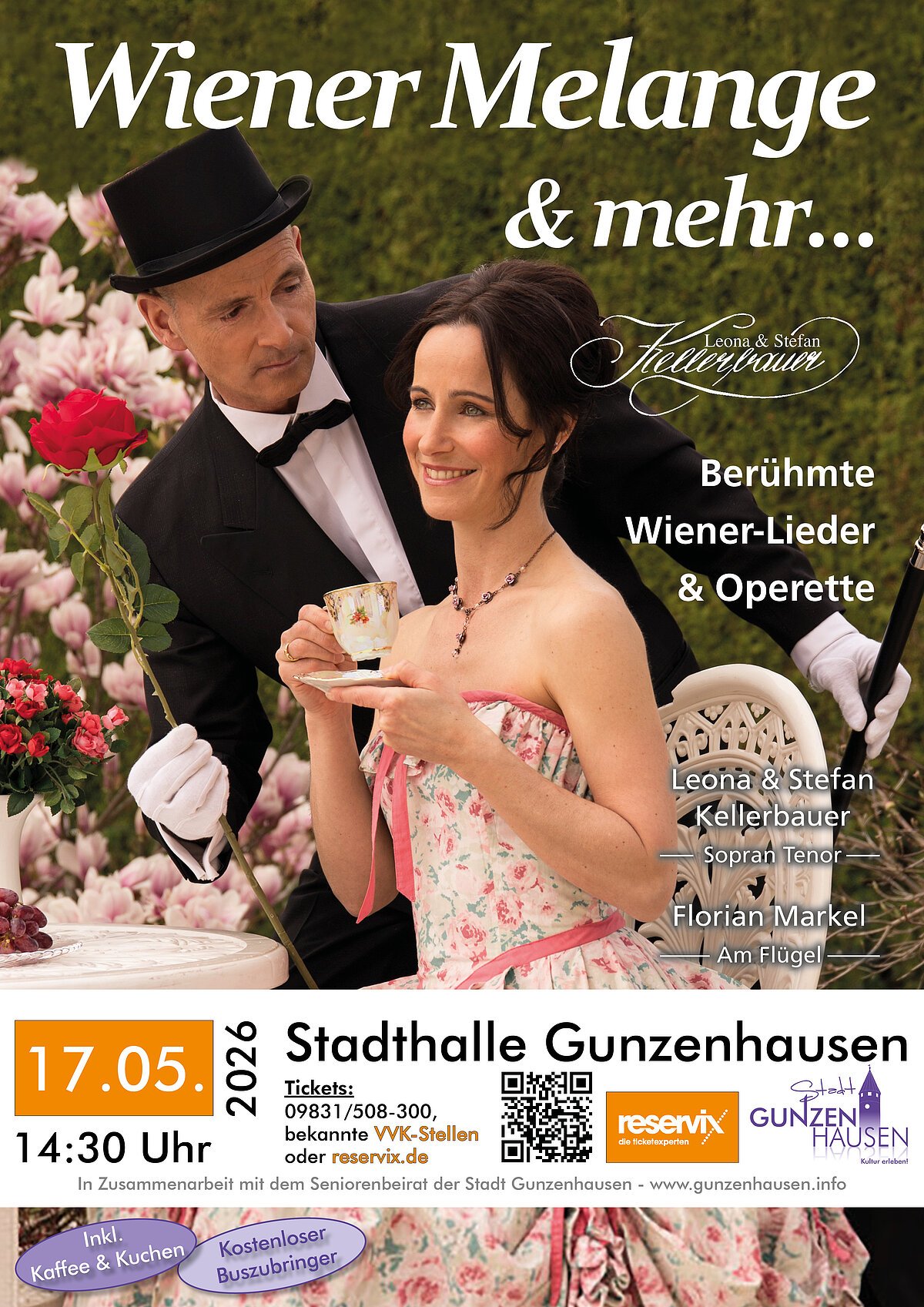 An einem hoffentlich wunderschönen Sonntagnachmittag im Mai 2026, genauer gesagt am 17. Mai 2026, lädt die Stadt Gunzenhausen gemeinsam mit dem Seniorenbeirat der Stadt Gunzenhausen zu einem musikalischen Unterhaltungsnachmittag mit Leona & Stefan Kellerbauer ein. Das Konzert findet in der Stadthalle statt und beginnt um 14.30 Uhr (Ende gegen 17 Uhr).