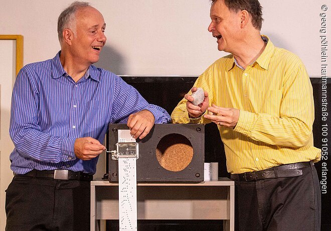 Ein blauer Ritt durchs Sprichwörtliche zur Kunst mit den "Streifenhörnchen" und (Spieluhr-)Musik mit Rolf-Bernhard Essig und Franz Tröger