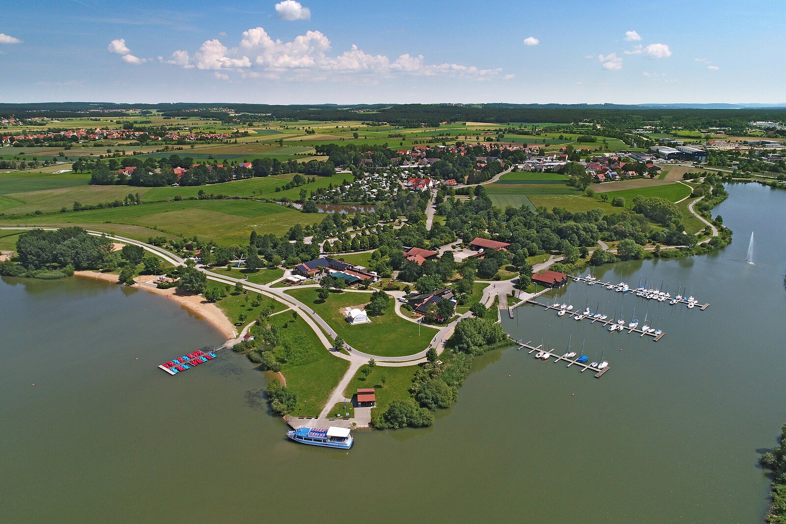 Der Großparkplatz am Seezentrum Schlungenhof liegt nur wenige Meter vom Altmühlsee entfernt.