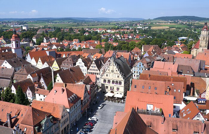 Der dreigeschossige Sandsteinquaderbau wurde auf der Höhe der reichsstädtischen Entwicklung der Stadt zwischen 1470 und 1480 (Turmanbau 1567) errichtet. Der Standort markiert den Kreuzungspunkt der durch Weißenburg verlaufenden Fernhandelsstraßen. Im ersten Stock befindet sich der Söller und im zweiten Stock die Sitzungsräume des Rates sowie des Stadtgerichts (keine freie Besichtigung möglich). Umfangreiche, grundlegende Sanierung in den Jahren 2002 bis 2004.