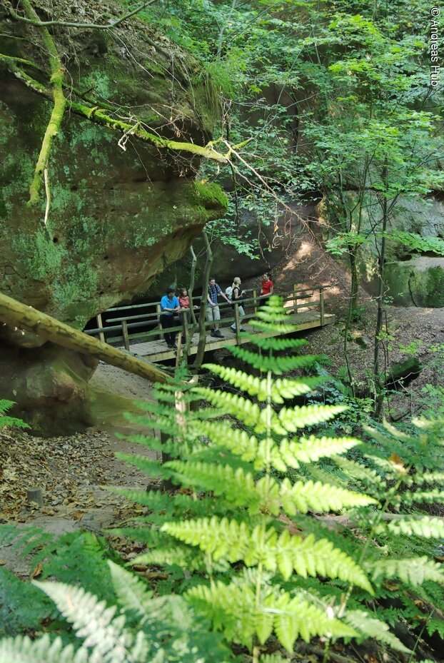 Diesem Sandstein begegnet man auf besonders beeindruckende Weise an zwei Naturschauspielen, zu denen „Der Seenländer“ führt: Am „Schnittlinger Loch“ (Etappe 10), einer stillen und tiefen Schlucht, und an den ehemaligen Wernsbacher Steinbrüchen (Etappe 1), heute eine fantastische Märchenwelt mitten im Wald. Einen echten Märchenwald durchquert „Der Seenländer“ im Arbachtal (Etappe 4), während zum Beispiel die Etappen 7 und 8 mit geschützten Feuchtwiesenbiotopen als wichtige Lebensräume für selten gewordene Pflanzen und Tiere aufwarten.