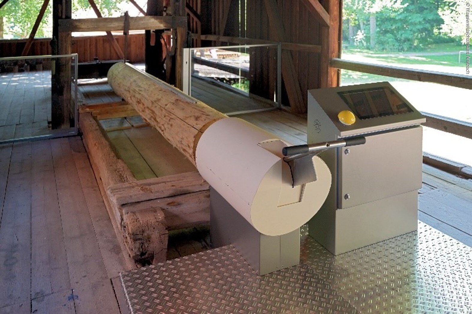 Im angrenzenden ehemaligen Sägewerk lädt ein Spiel zum Wettkampf ein: Handsägen gegen die Wasserkraft - wer ist schneller?