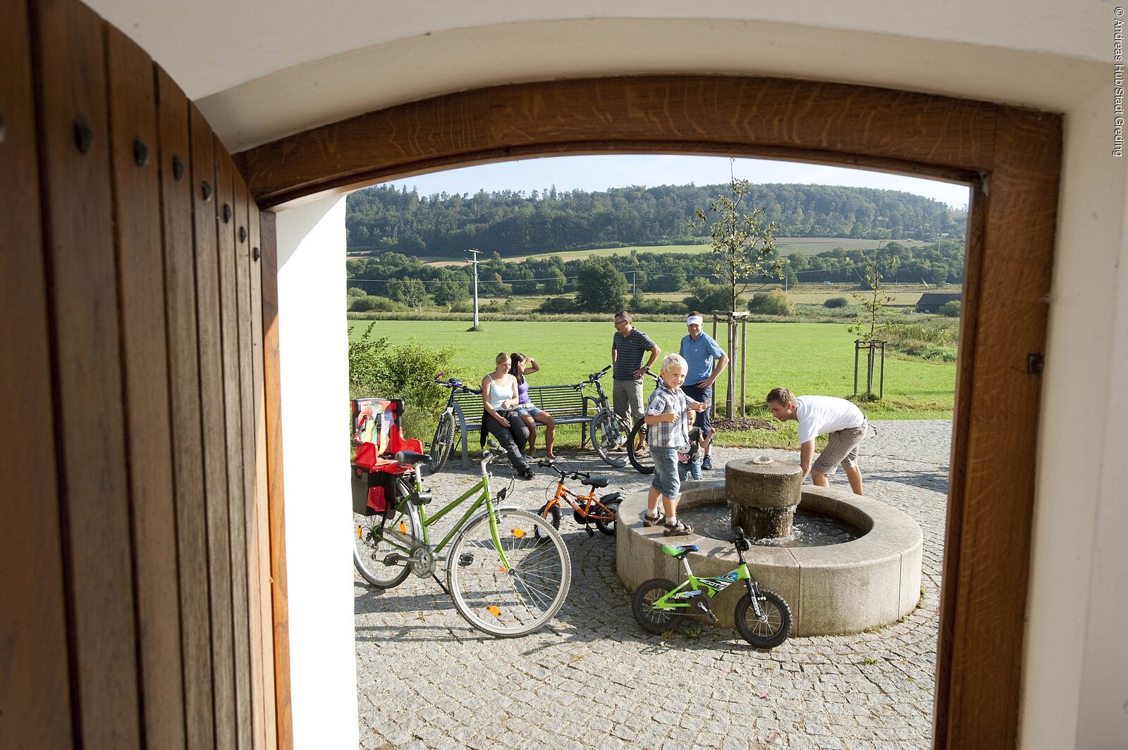 Vor Enkering geht es scharf rechts ab und anschließend in nördlicher Richtung weiter. In Mettendorf kommen die Radler wieder ans Ufer der Schwarzach. Dem naturbelassenen Flusslauf folgen sie bis nach Greding. Um in die Altstadt mit ihren 21 Türmen, Barockbauten und der romanischen Basilika St. Martin zu gelangen, biegt man nach rechts vom Fränkischen WasserRadweg ab und überquert die Sulz auf der Bahnhofstraße.