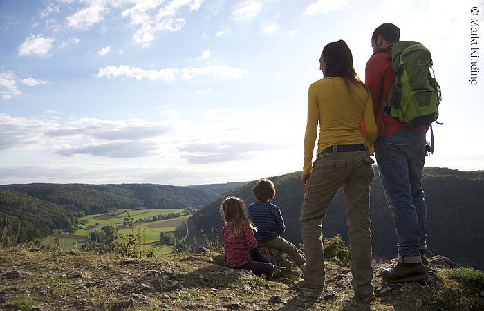 Sonnige Wacholderheiden mit kurzem Gras, auf denen nur vereinzelt Wacholderbüsche stehen, liegen rund um Kinding. Den Ort mit seiner beeindruckenden Kirchenburg durchquert man auf der Beilngrieser Straße, biegt am Marktplatz erst links und dann rechts ab und folgt der Straße „Am Mühlbach“ über die Schwarzach und