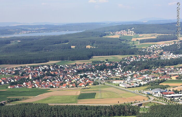 Über Liebenstadt und Altenheideck geht es von der Jurahochfläche hinunter ins Tal. Die Radler gelangen in ein Waldstück, wo sie einmal scharf rechts abbiegen. Bald stoßen sie auf den Röttenbach und wenden sich nach links. Es geht über die Bundesstraße und auf der Deutschherrnstraße nach Röttenbach hinein.