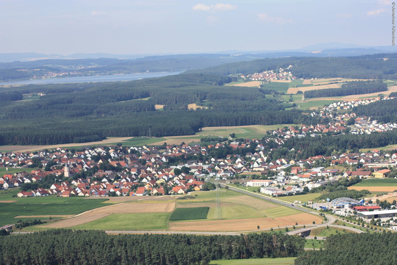 In Röttenbach biegen die Radler rechts auf die Rother Straße ein und verlassen diese am Röttenbach nach links. Dem Weg am Wasser folgen sie durch den Ort, bis sie schließlich auf die Straße „Im Tal“ einbiegen. Der Radweg führt ans Ufer der Schwäbischen Rezat. Diese wird auf der Röttenbacher Straße überquert, dann geht es links in die Mühlstraße. Nach dem Ort führt die Route nach links in den Wald und anschließend zwischen Feldern nach Stirn. Hier hält man sich rechts Richtung Allmannsdorf und biegt schließlich links ab zum Brombachsee.