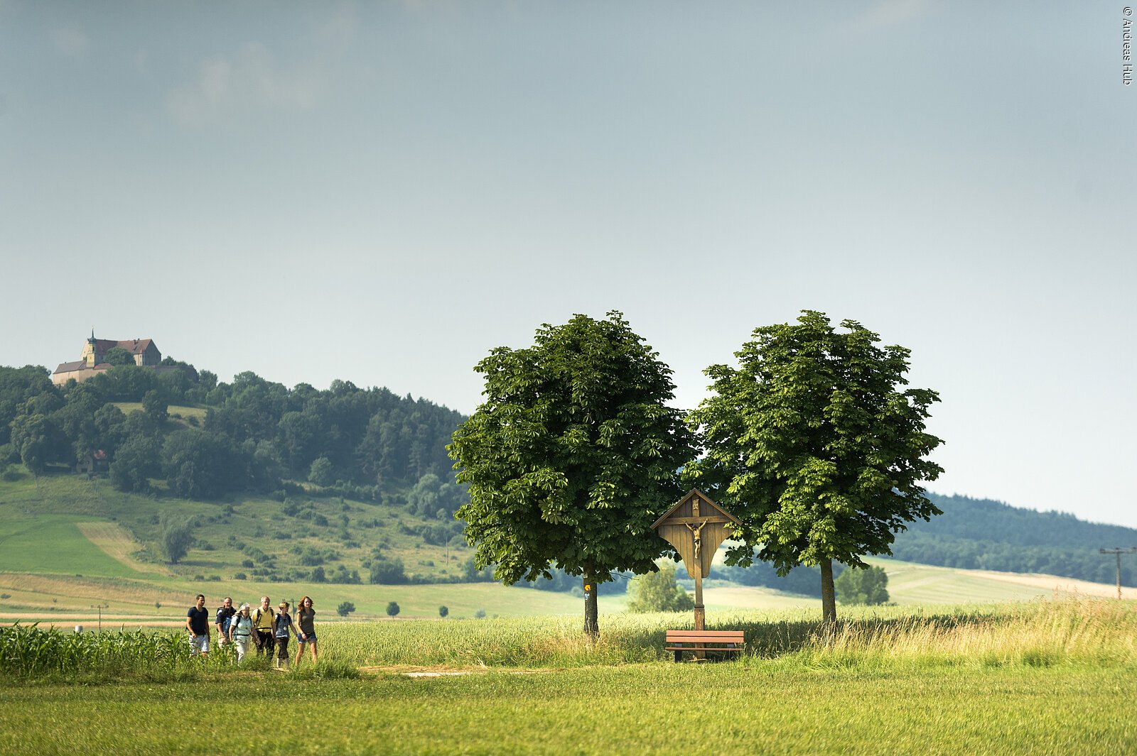 Nach dem Start an der Jakobskirche in Nürnberg beginnt ein längerer Abschnitt durch den Lorenzer Reichswald. Ab dem Rothsee ändert sich das Landschaftsbild. Vom Rothsee aus lohnt sich ab Grashof ein Abstecher zum Ort Kronmühle. Folgen Sie der Markierung des Wanderwegs „Quellen am Rothsee“ bis zur kleinen Jakobskapelle in Kronmühle und nutzen Sie die Gelegenheit zur Rast und inneren Einkehr. Danach wechselt die flache, sandige Waldlandschaft zum hügeligen Keuper, der dem fränkischen Jura vorgelagert ist. Dort beginnt der Naturpark Altmühltal mit seinen markanten Wacholderheiden, die den Weg bis Eichstätt begleiten.