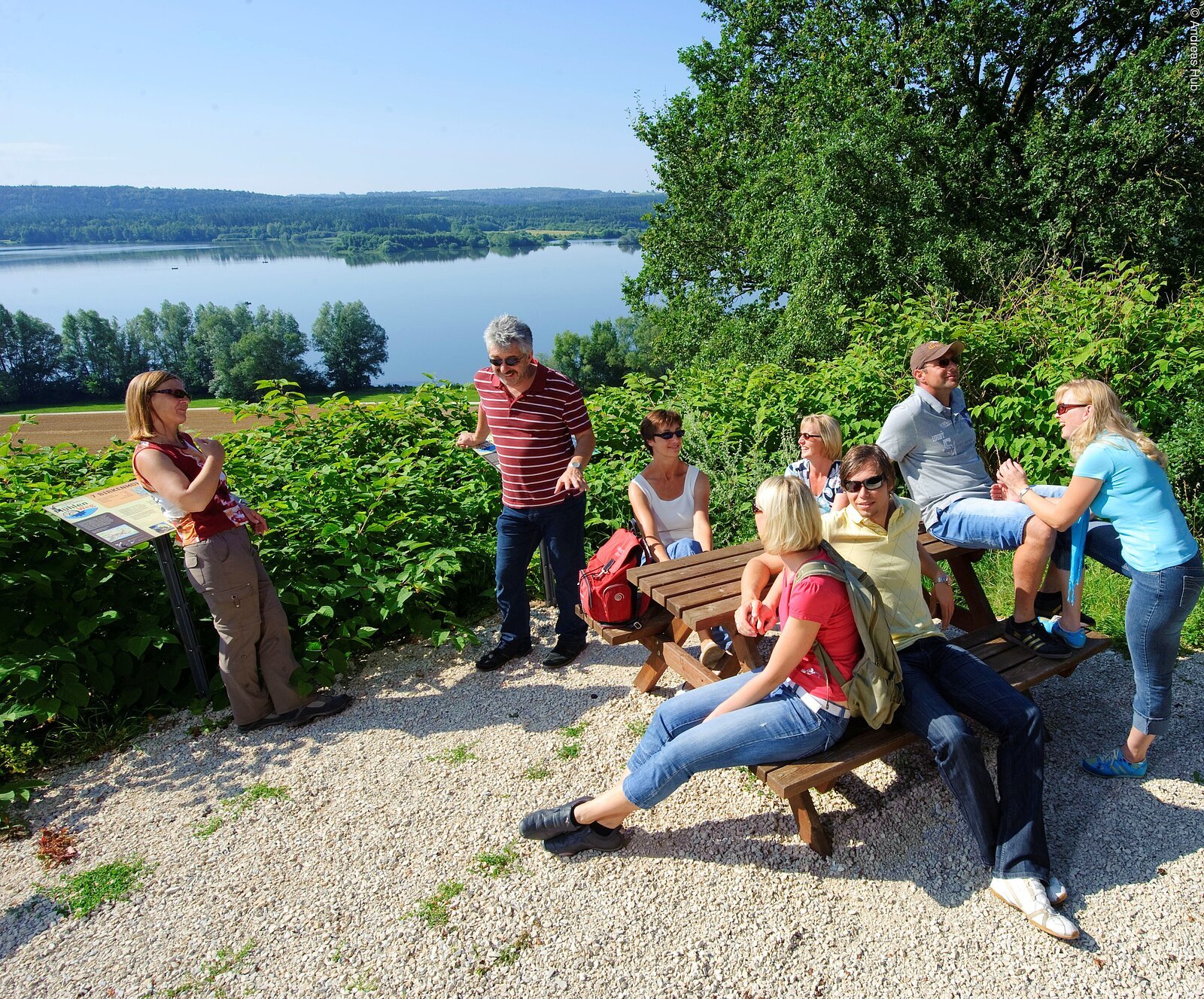Zwölf Wassermühlen und vier weitere Anwesen wurden in den 1970er Jahren beim Bau des Fränkischen Seenlandes aufgekauft und abgebrochen. Der Pfeil auf den Infotafeln zeigt jeweils den ehemaligen Standort.