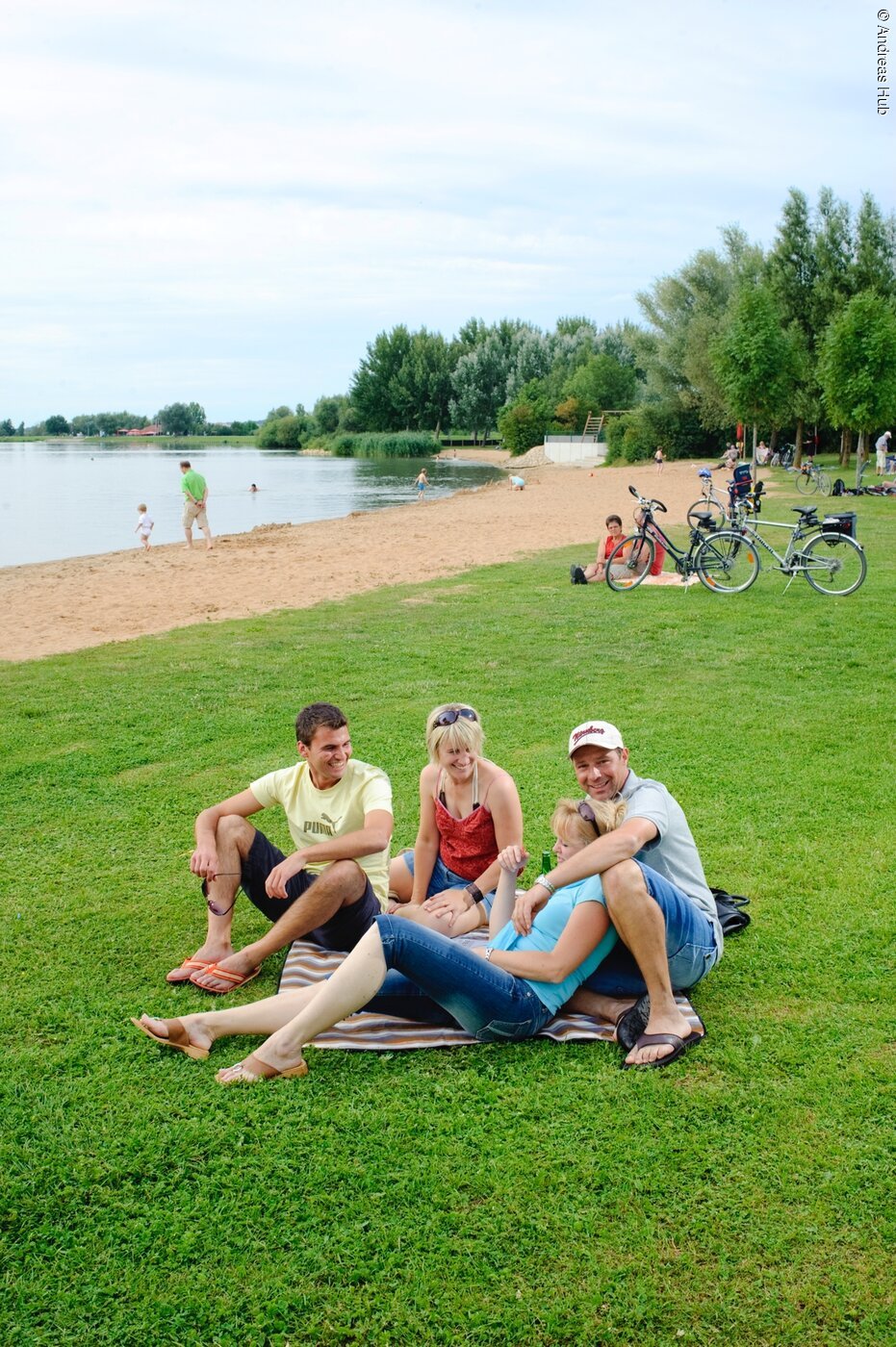 Von der Stadthalle aus fahren wir parallel zur Altmühl unter der großen Steinbrücke, vorbei an der Jugendherberge zur Wassergasse, links dem Fuß- und Radweg zum Altmühlsee folgend durch die DB-Unterführung. Vorbei an Schrebergärte und Wiesengrund unterqueren wir die Umgehungsstraße B13/466 und erreichen den Damm des Altmühlsee/Überleiter, auf dem wir links einbiegen. Der Weg führt uns über das Auslaufbauwerk weiter nach Norden. Nach dem Seezentrum Wald verlassen wir links bei dem Schild Wald den Altmühlsee. Auf der rechten Seite passieren wir die Markgrafenkirche und das Schloss Wald. Dann rechts, Richtung Ortsmitte, anschließend die erste Straße links, über die Kreuzung geradeaus nach Unterhambach. Vor der Unterhambacher Mühle rechts nach Unterhambach. Hier lohnt es sich, den 2,5 km langen landwirtschaftlichen Lehrpfad in die Route einzubeziehen. Nach Unterhambach erwartet uns ein schattiger Limes-Weg mit leichtem Anstieg. Nach dem Waldweg an der Kreuzung (rechts steht ein Flurkreuz) nach Großlellenfeld rechts abbiegen.