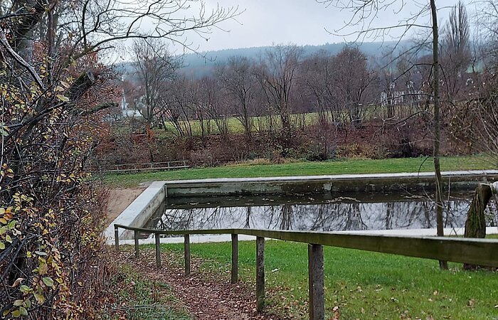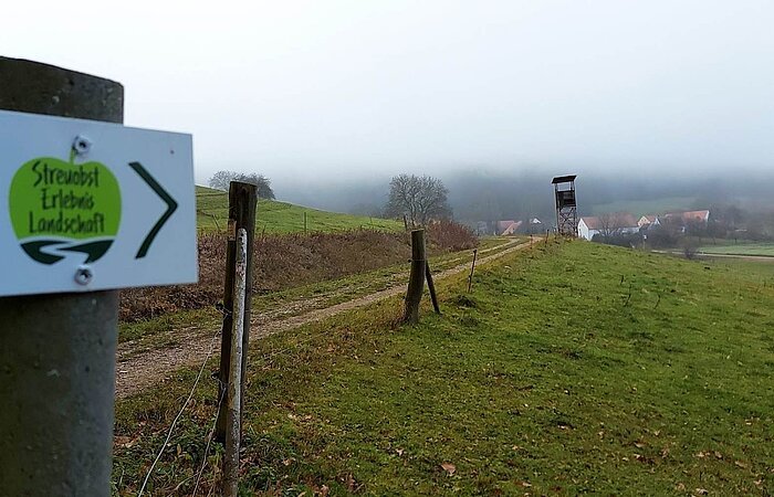 Los geht es am Sportplatz Meinheim. Hier wurde erst vor wenigen Jahren eine Streuobstwiese angelegt, welche mit Lesesteinhaufen auch den Ansprüchen der Eidechsen gerecht werden will. Hier bekommt man auch Informationen zu Maulbeerbäumen, welche in Meinheim sowohl in junger als auch in alter "Ausführung" zu finden sind. Entlang des Löschweihers führt der Weg durch das bayerische Golddorf vorbei am schönen Kirchgarten hinaus in die freie Flur. Entlang des Waldes bekommen wir nach ca. 2,3 km einen beeindruckenden Blick auf die Weide- und Streuobstwiesen bei Oberweiler. Der kleine Ort schmiegt sich an den Waldrand und die Höhen des Hahnenkamms und beeindruckt mit einem tollen Blick und der einmaligen Landschaft um den Weiler. Nun geht es weiter nach Wolfsbronn, welches vor allem durch die nahegelegene Steinerne Rinne bekannt ist. Auf dem Rückweg führt der Wanderweg noch einmal durch die schönsten Ecken von Meinheim.
